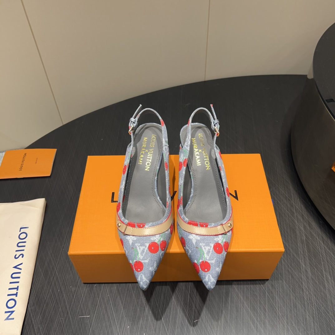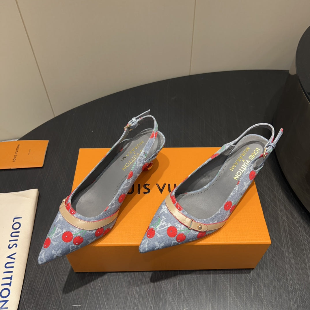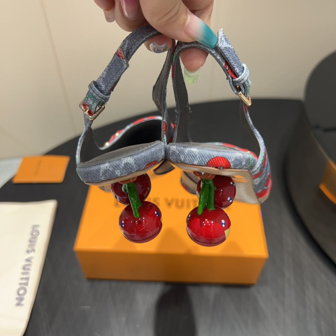 LV HIGH SLINGBACK LOGO AND CHERRY PRINT 25S 55MM IN GREY DENIM