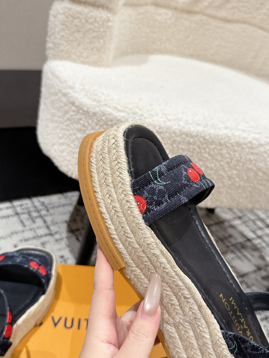 LV PLATFORM ESPADRILLE SANDALS 25S IN NAVY BLUE DENIM