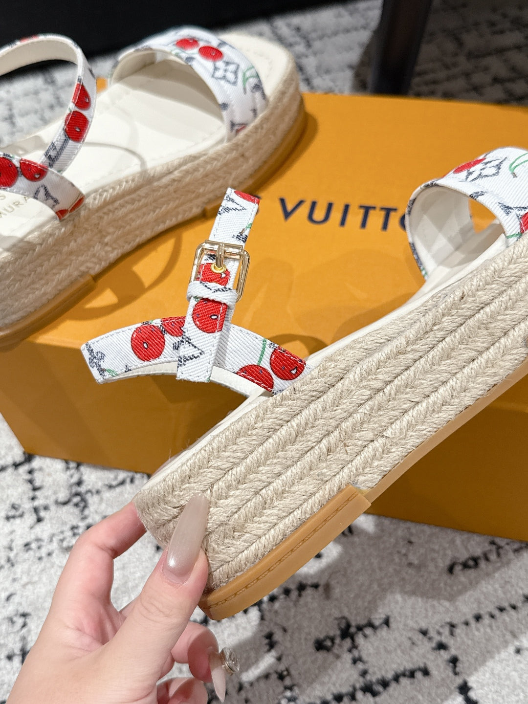 LV PLATFORM ESPADRILLE SANDALS 25S IN WHITE DENIM