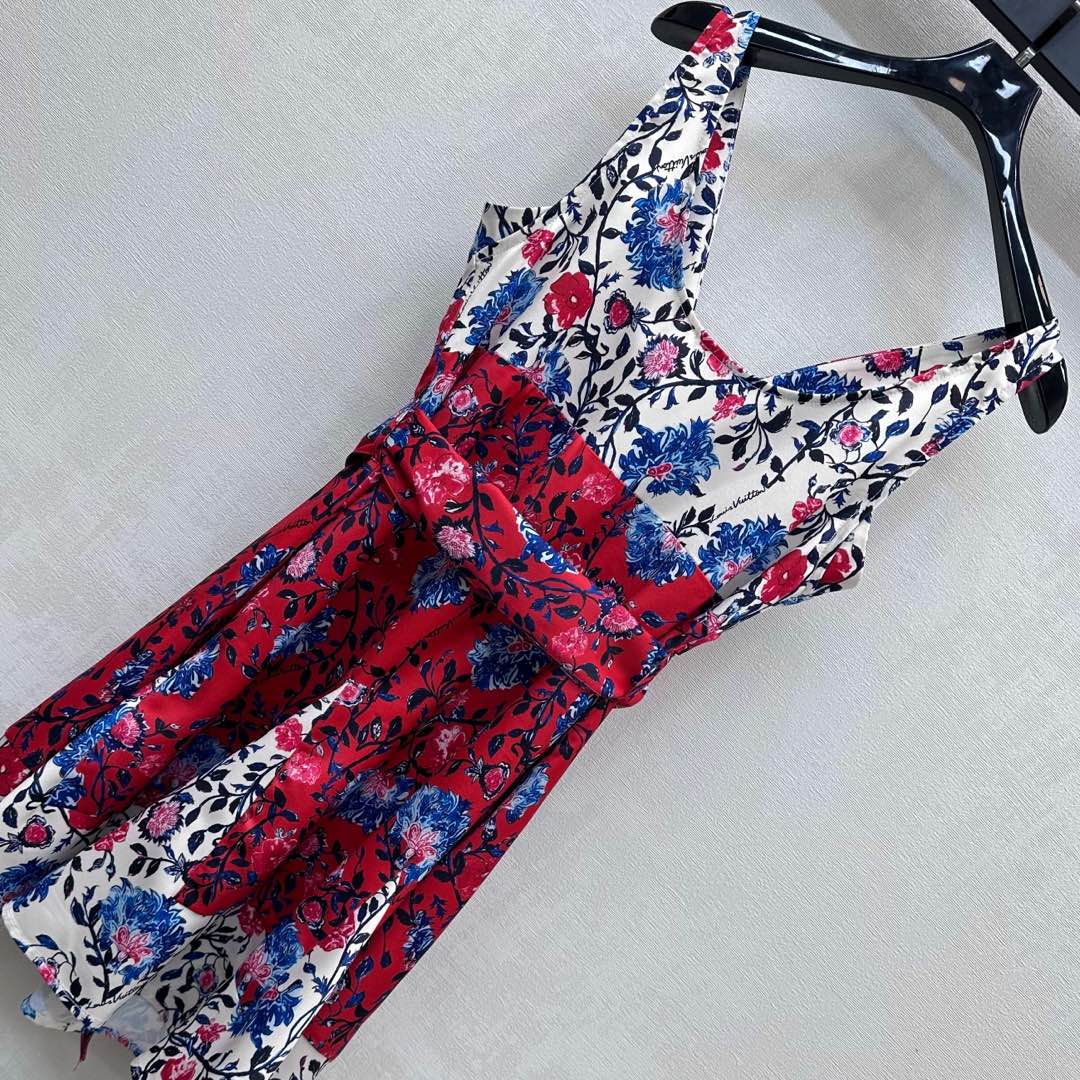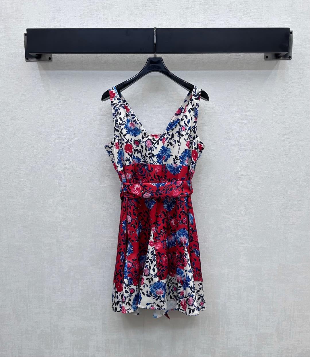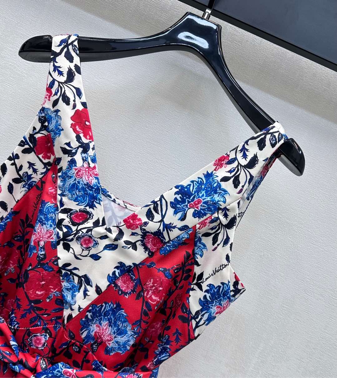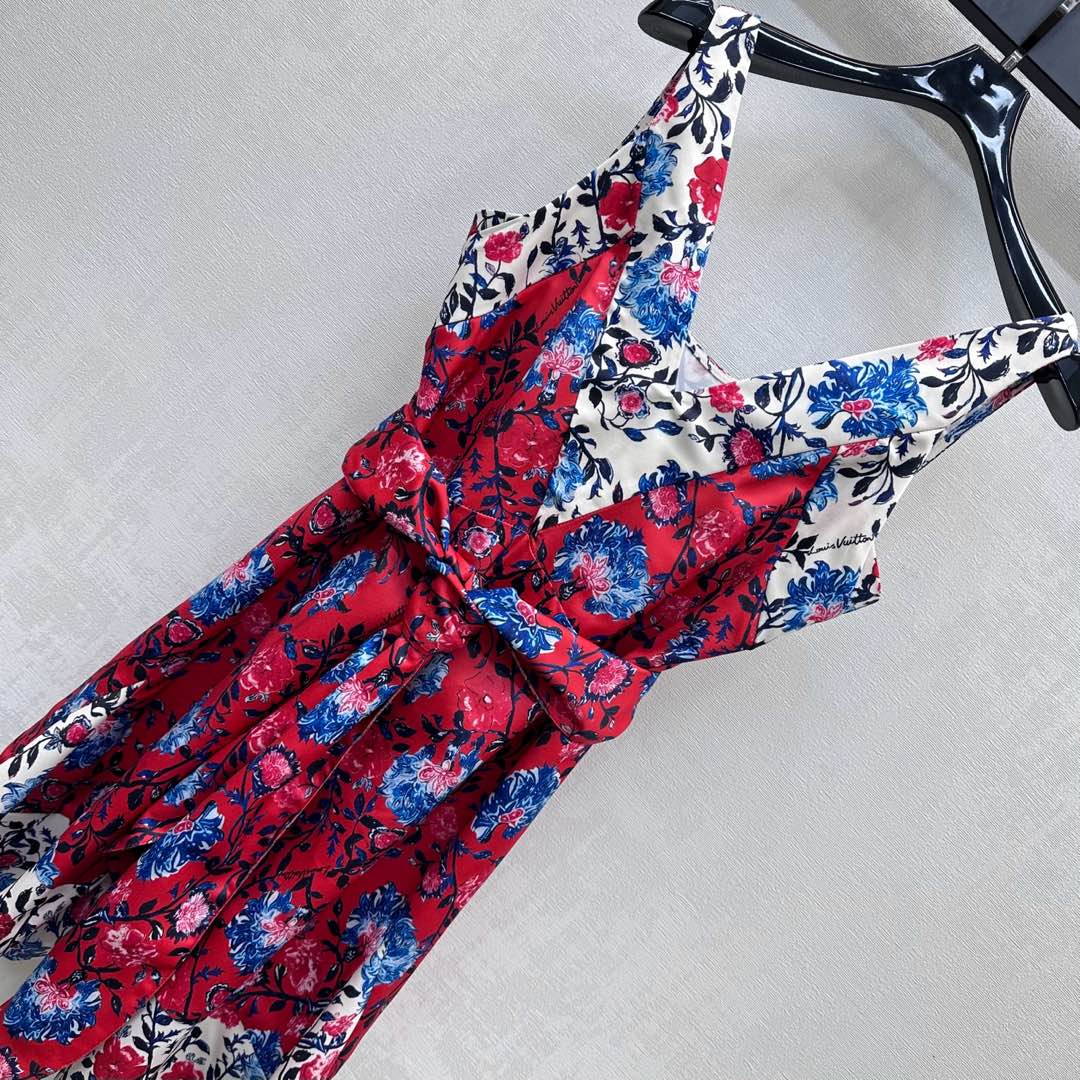 LV SLEEVELESS V-NECK DRESS WITH WAIST TIE 263818