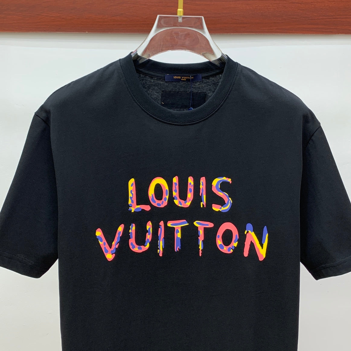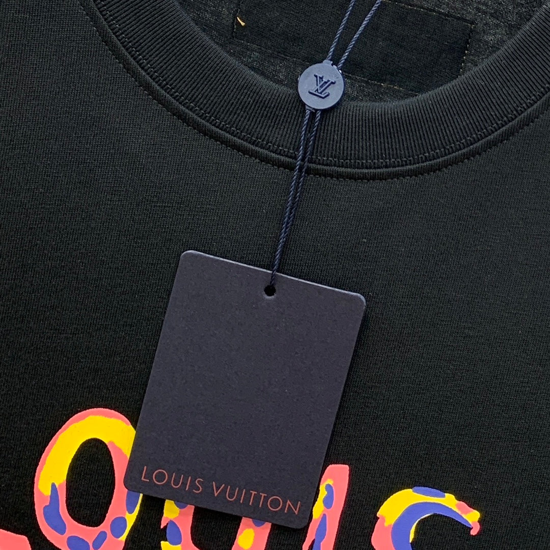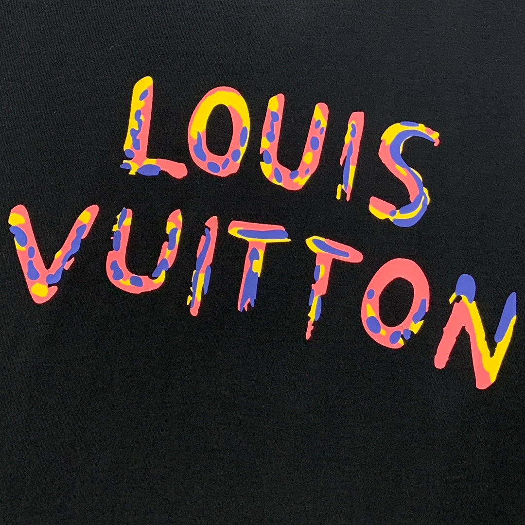 LV T-SHIRT COLORFUL LOGO IN BLACK COTTON 238877