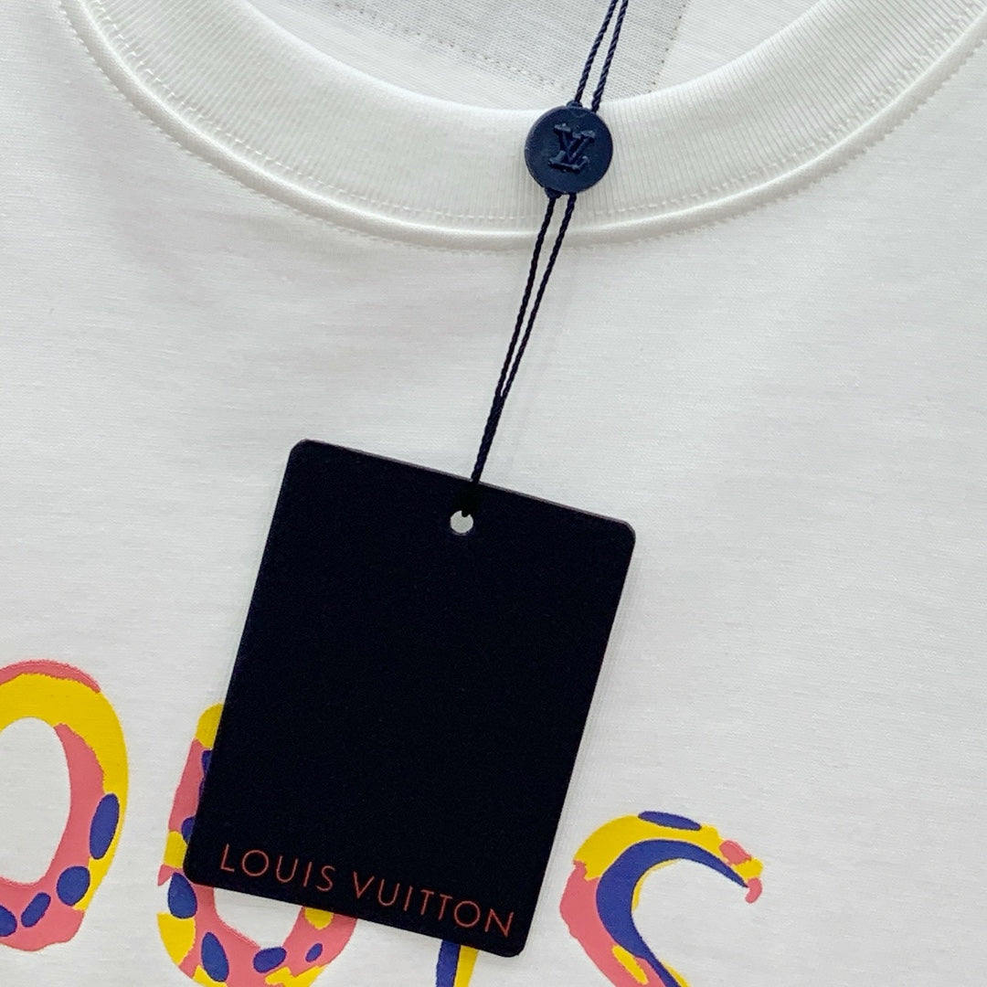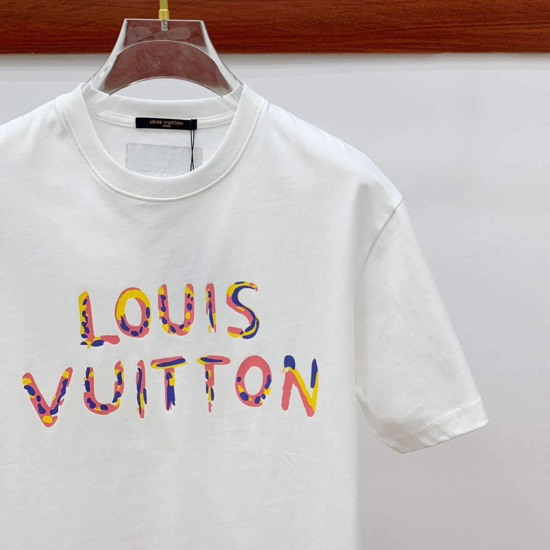 LV T-SHIRT COLORFUL LOGO IN WHITE COTTON 238876