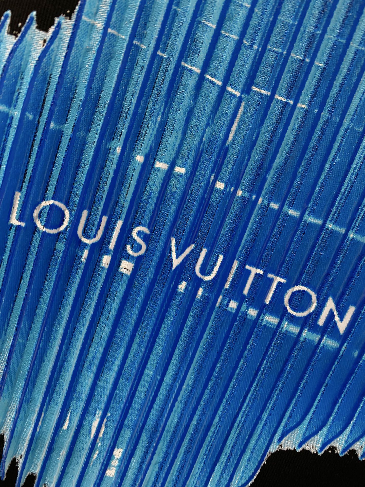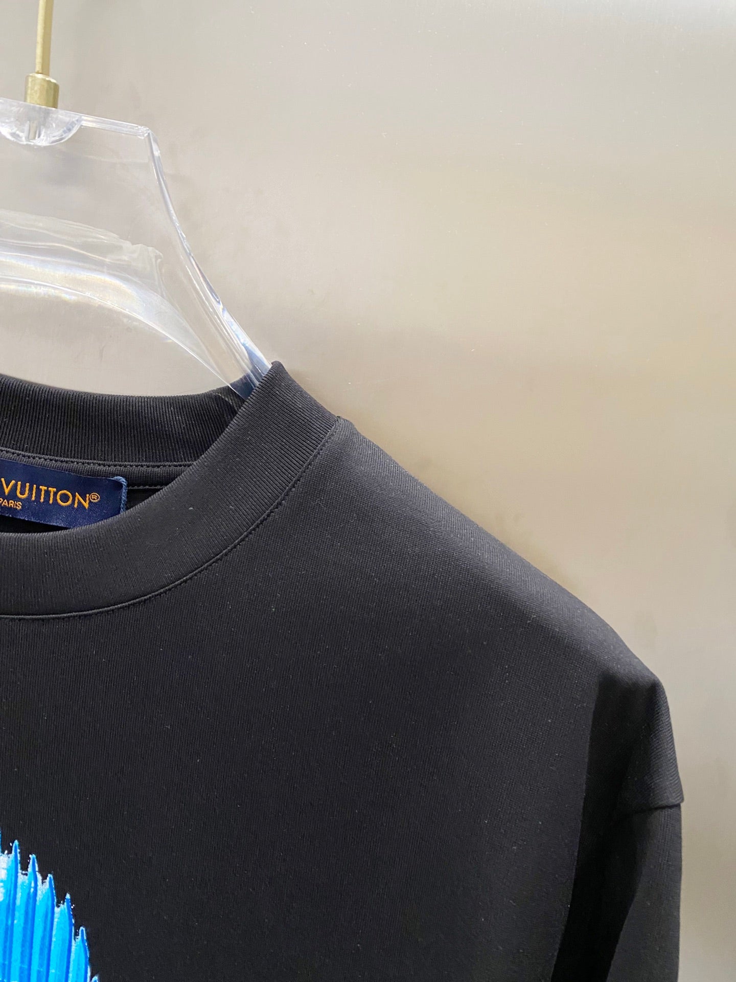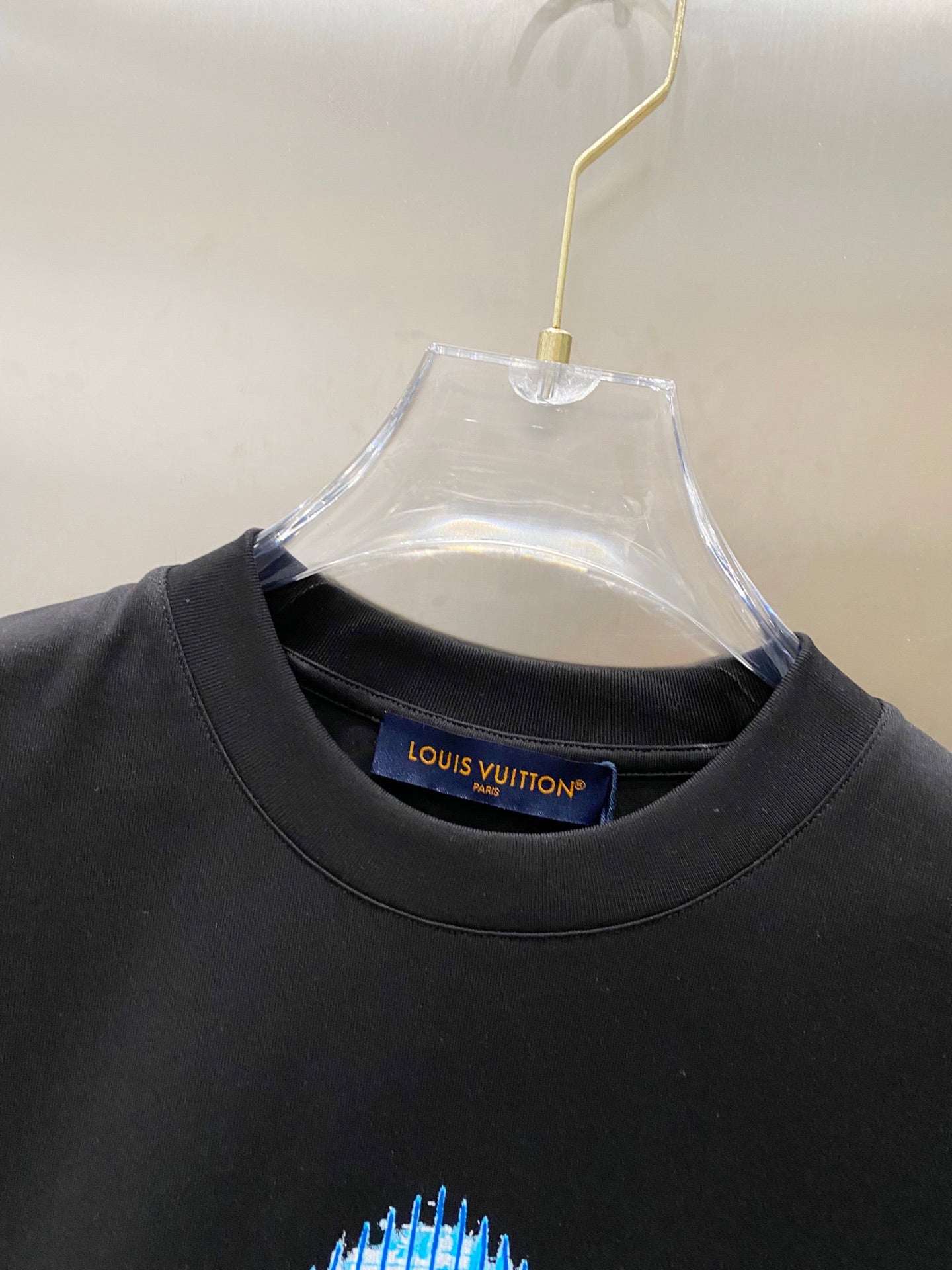 LV T-SHIRT IN BLACK COTTON BLUE LOGO PRINT 238836