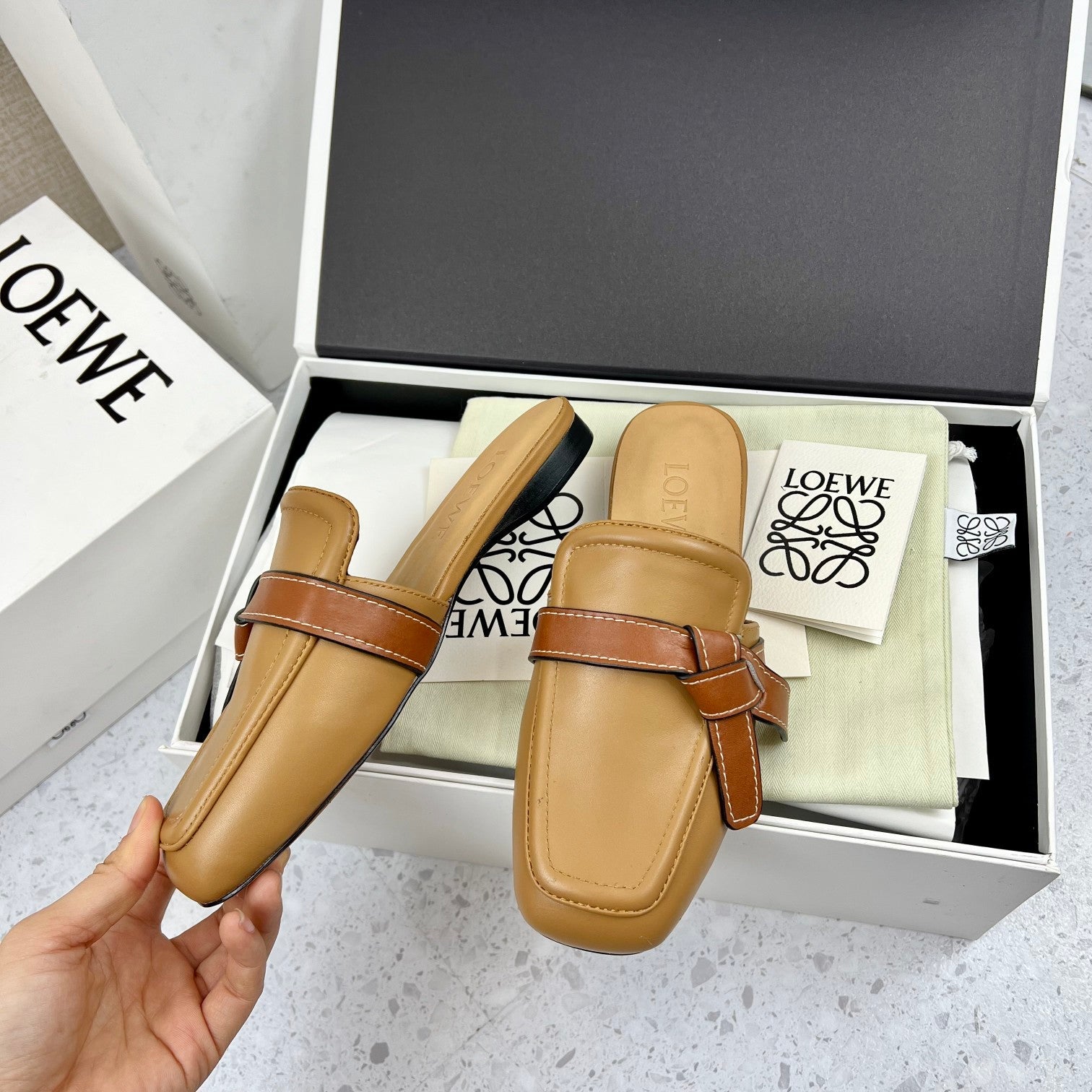 LW GATE BROWN BELTED MULE CAMEL CALFSKIN