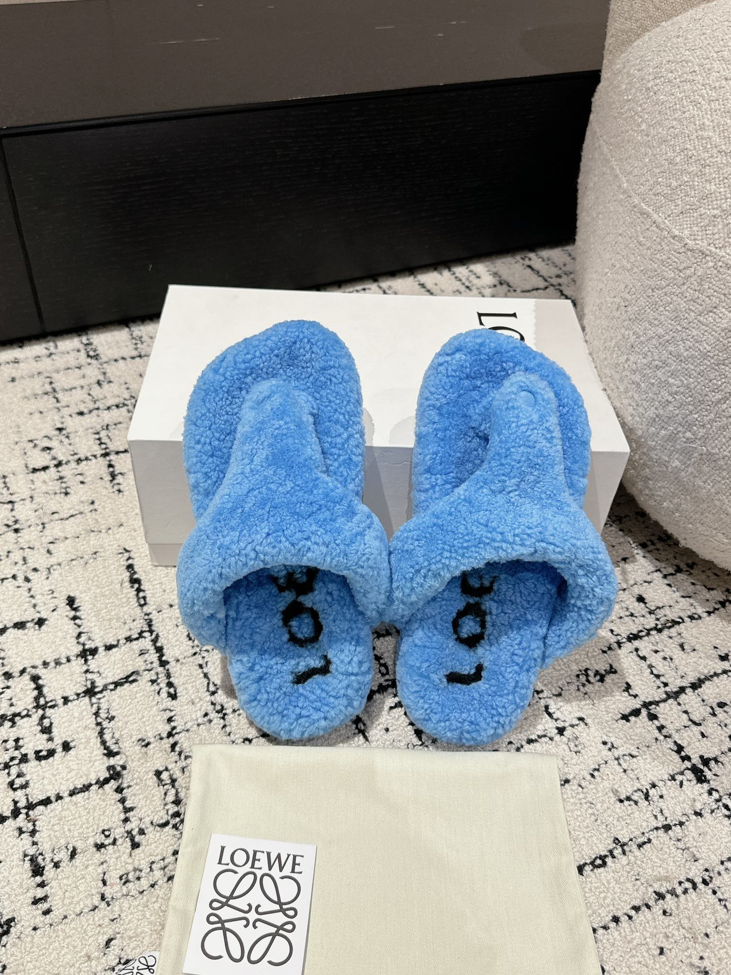 LW SHEARLING THONG SLIPPER IN LAPIS