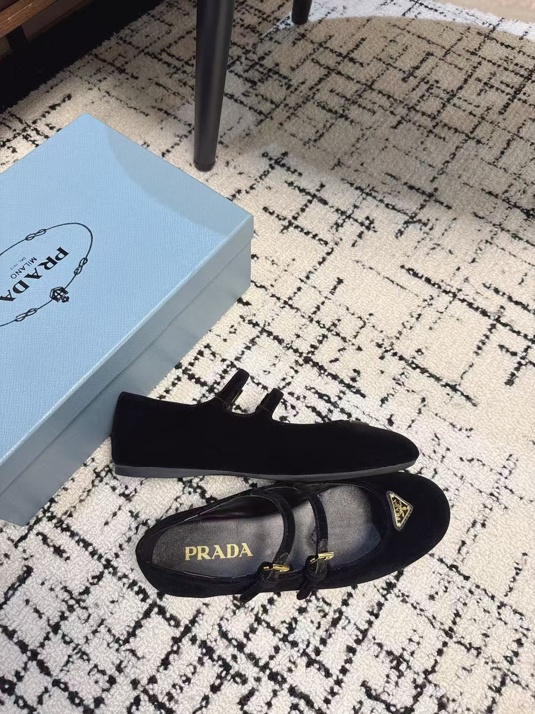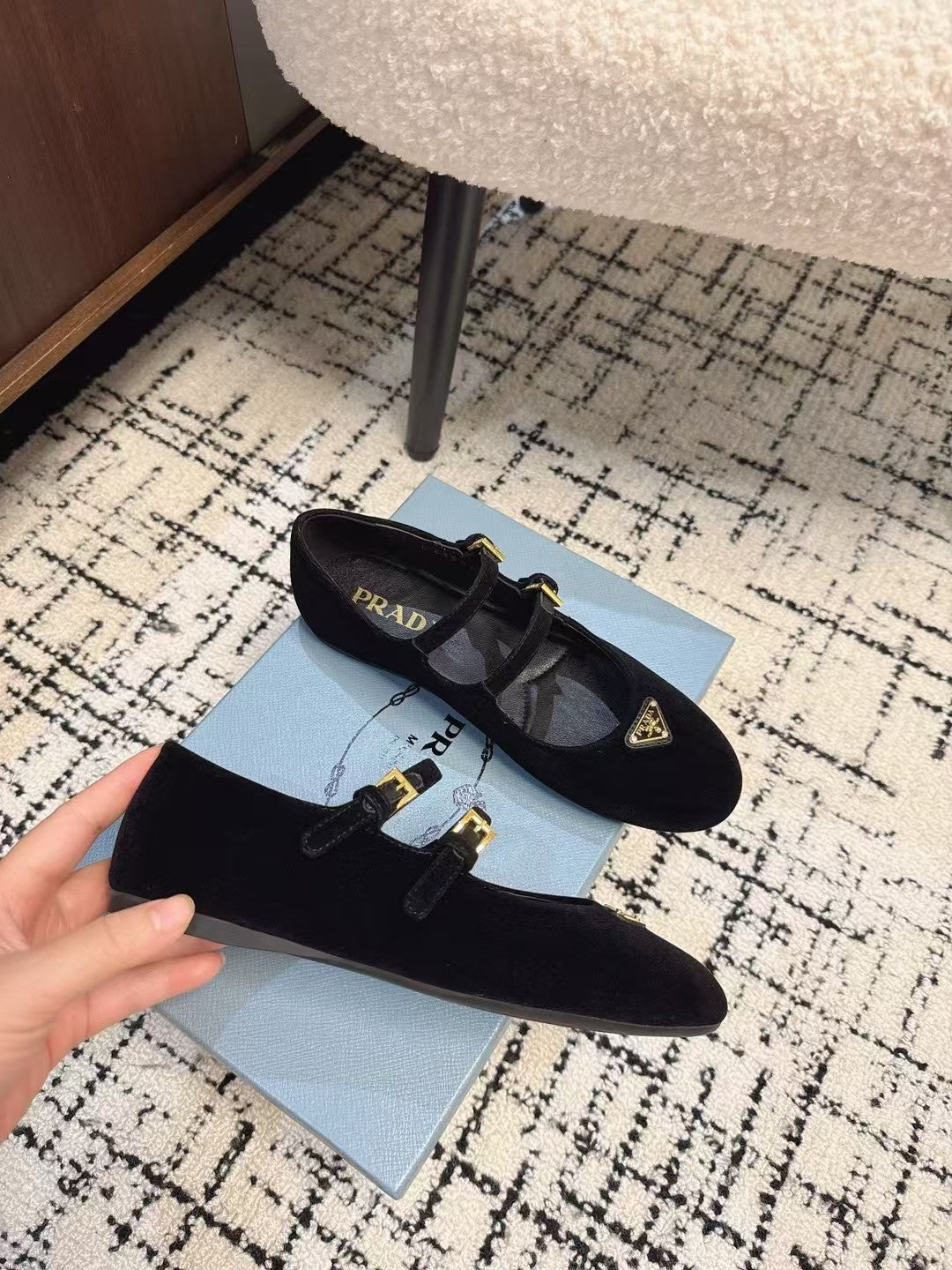 MARY JANE FLAT WITH TRIANGLE LOGO IN BLACK VELVET