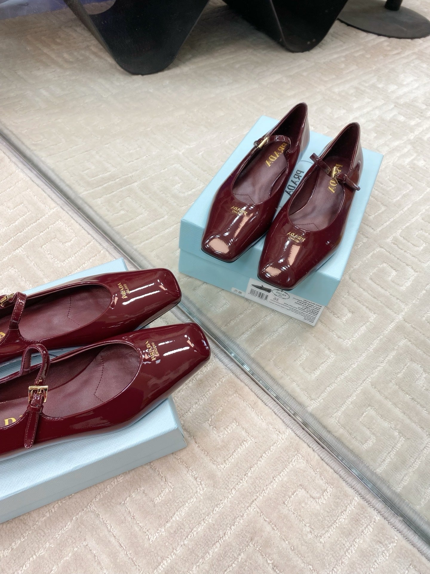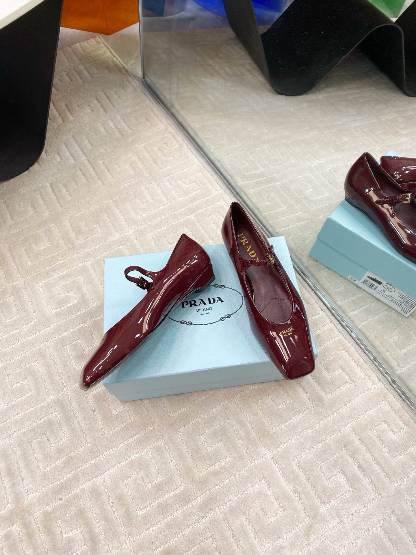 MARY JANE FLATS SQUARE TOE IN BURGUNDY RED PATENT SHEEPSKIN