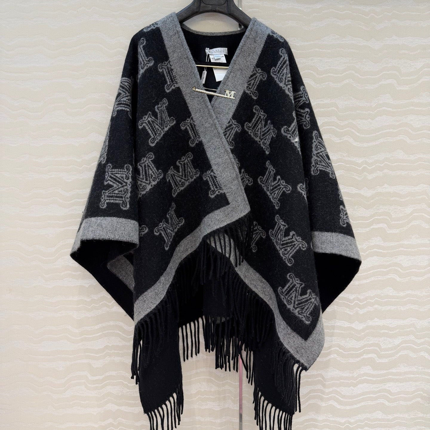 MAX MARA 25S FRINGED KNIT CAPE 163