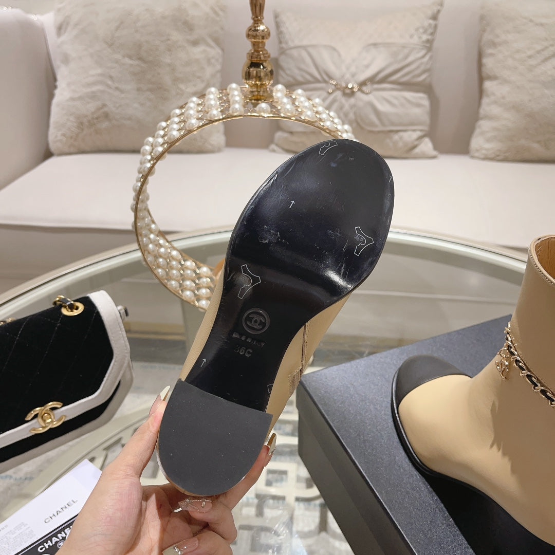 Upper: Italian-imported calfskin, complemented by Chanel’s iconic logo and exclusive chain elements.