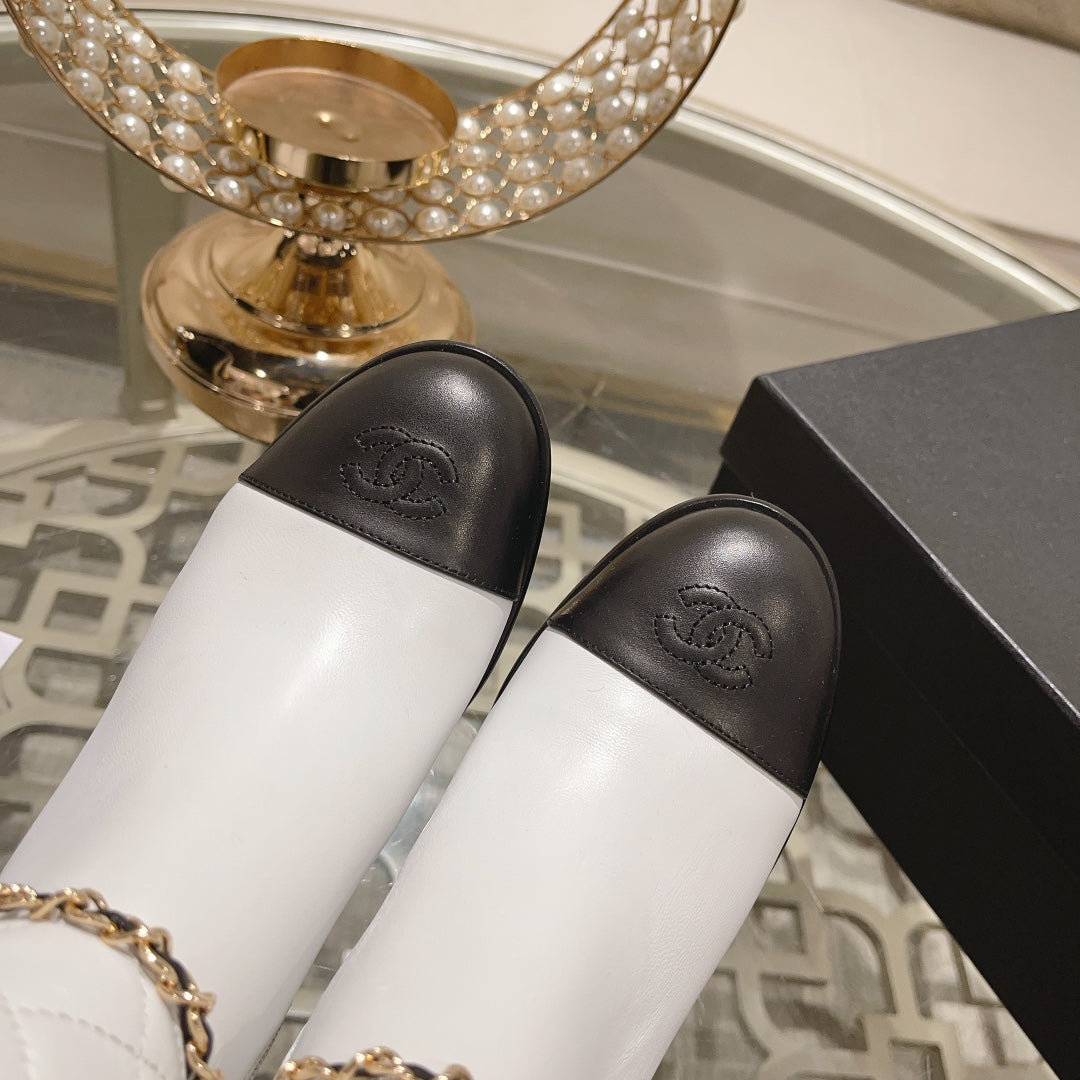 Upper: Italian-imported calfskin, complemented by Chanel’s iconic logo and exclusive chain elements.
