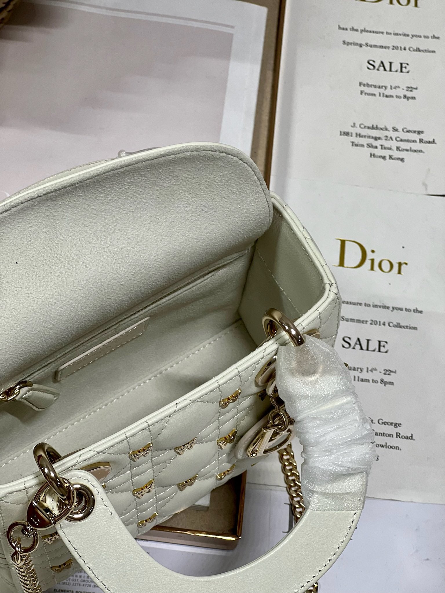 MINI LADY 17 BUTTERFLY STUD WHITE LAMBSKIN