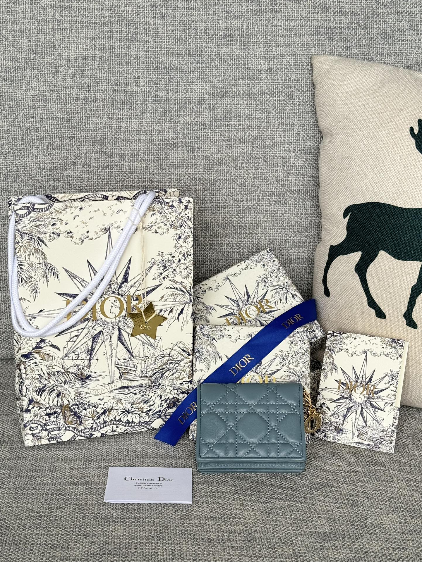 MINI LADY GARDENIA WALLET 11 IN SLATE GREY QUILTED CALFSKIN