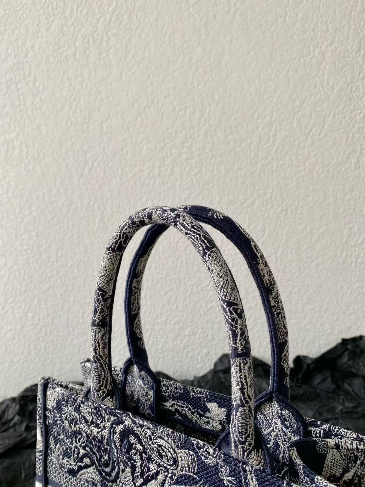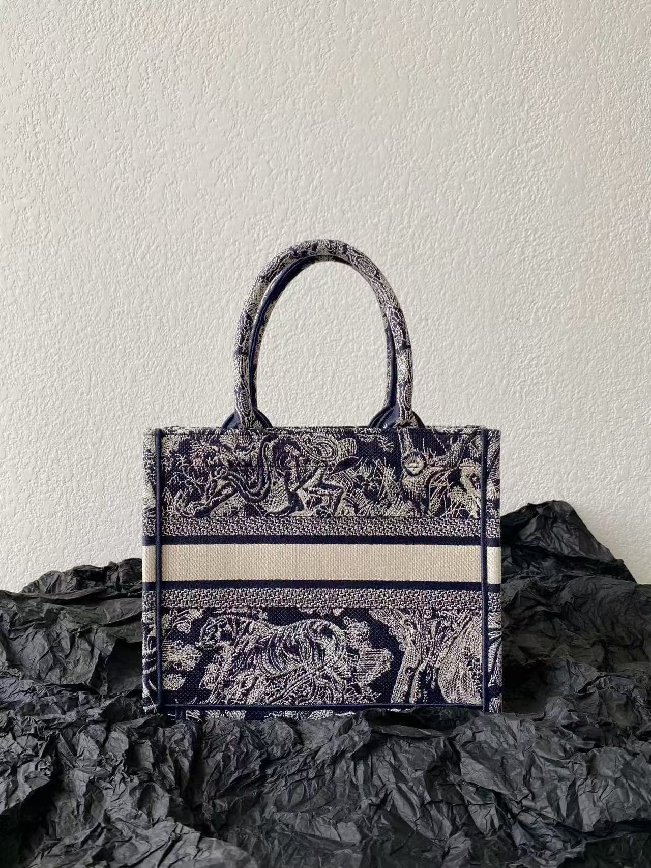 MISS SMALL TOTE 26 IN NAVY BLUE AND WHITE CANVAS
