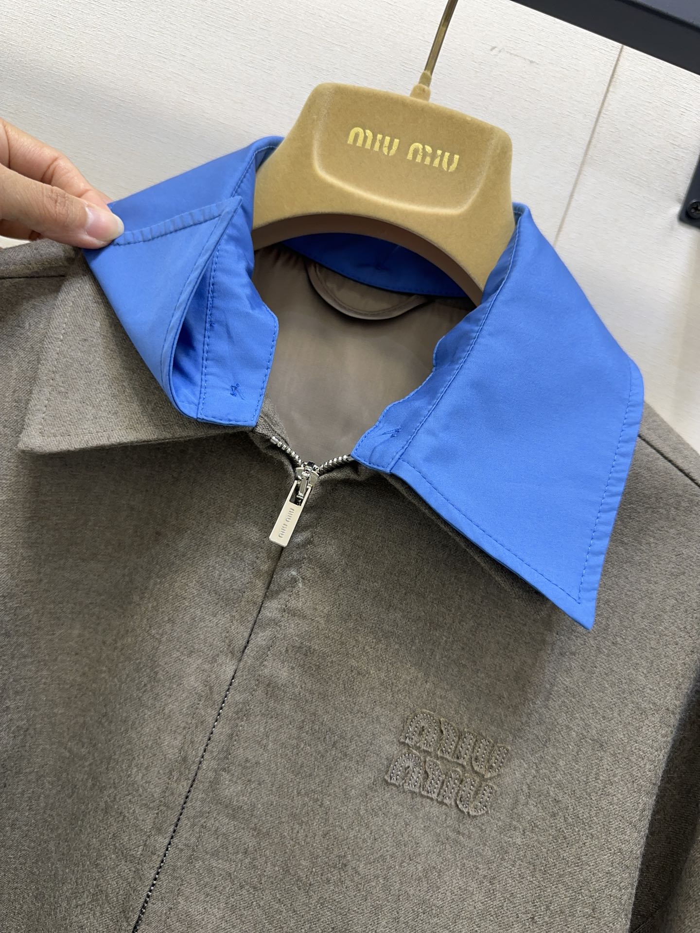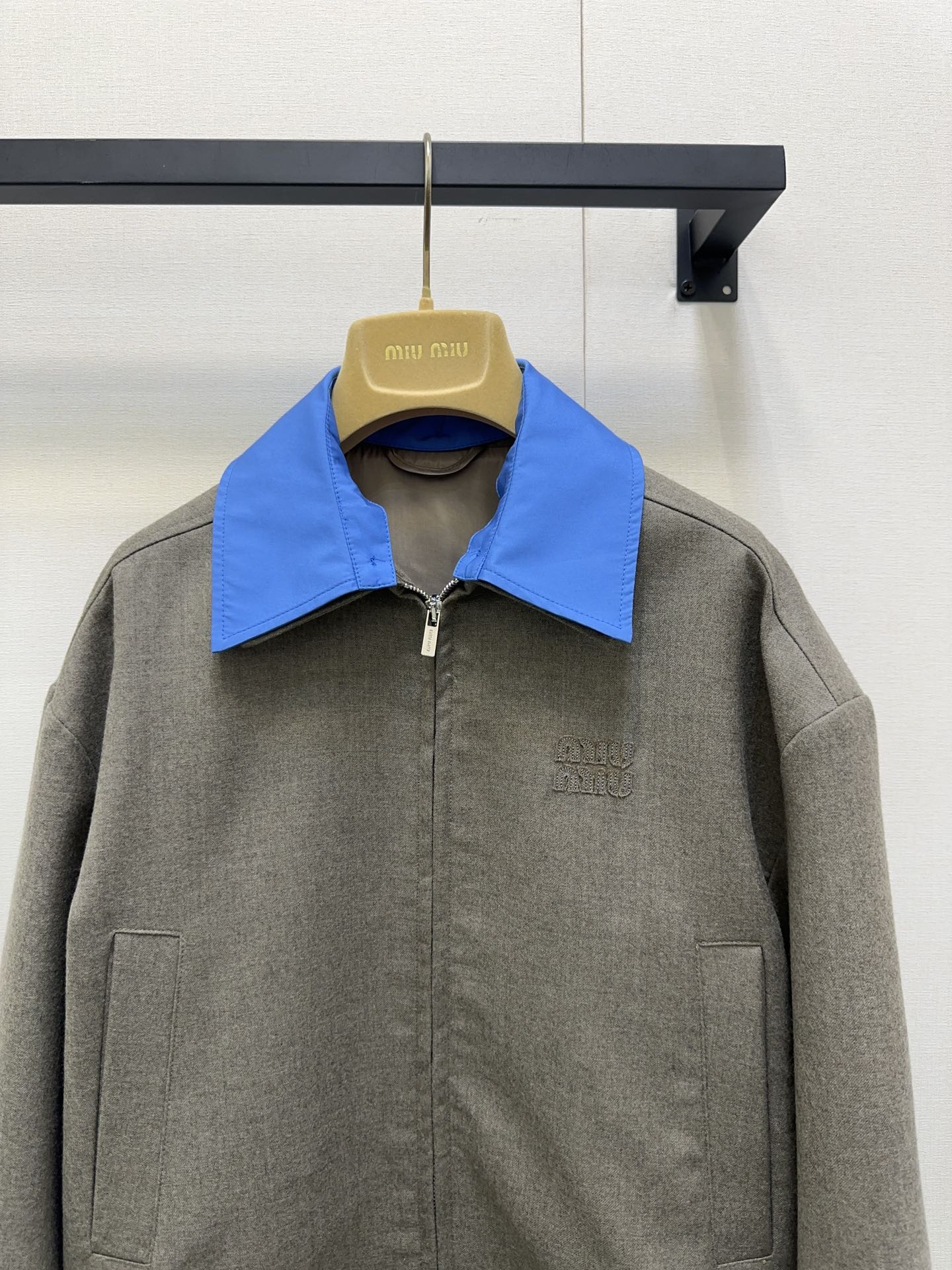 MIUMIU CONTRAST-FABRIC COLLAR JACKET STYLE 38