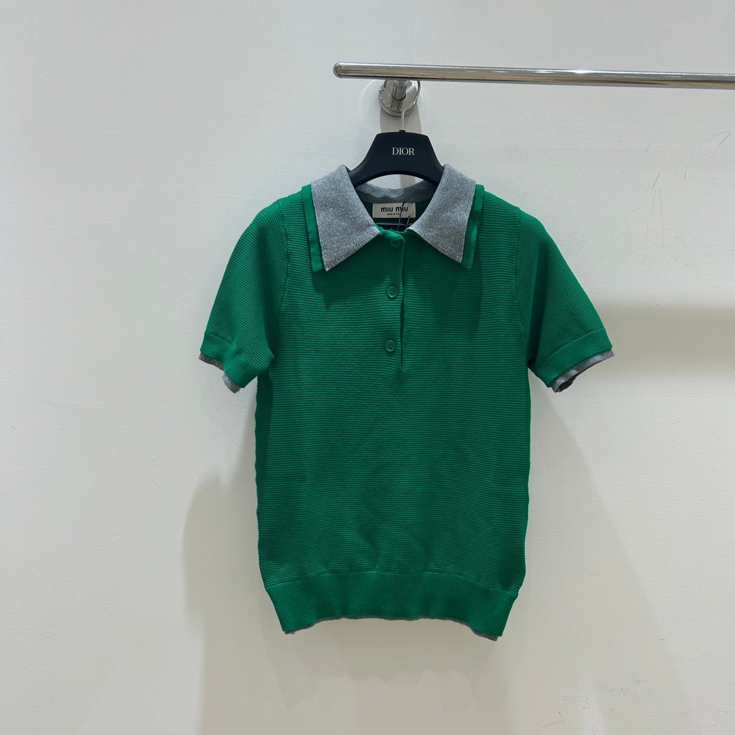 MIUMIU SHORT-SLEEVE KNIT POLO SHIRT STYLE 202