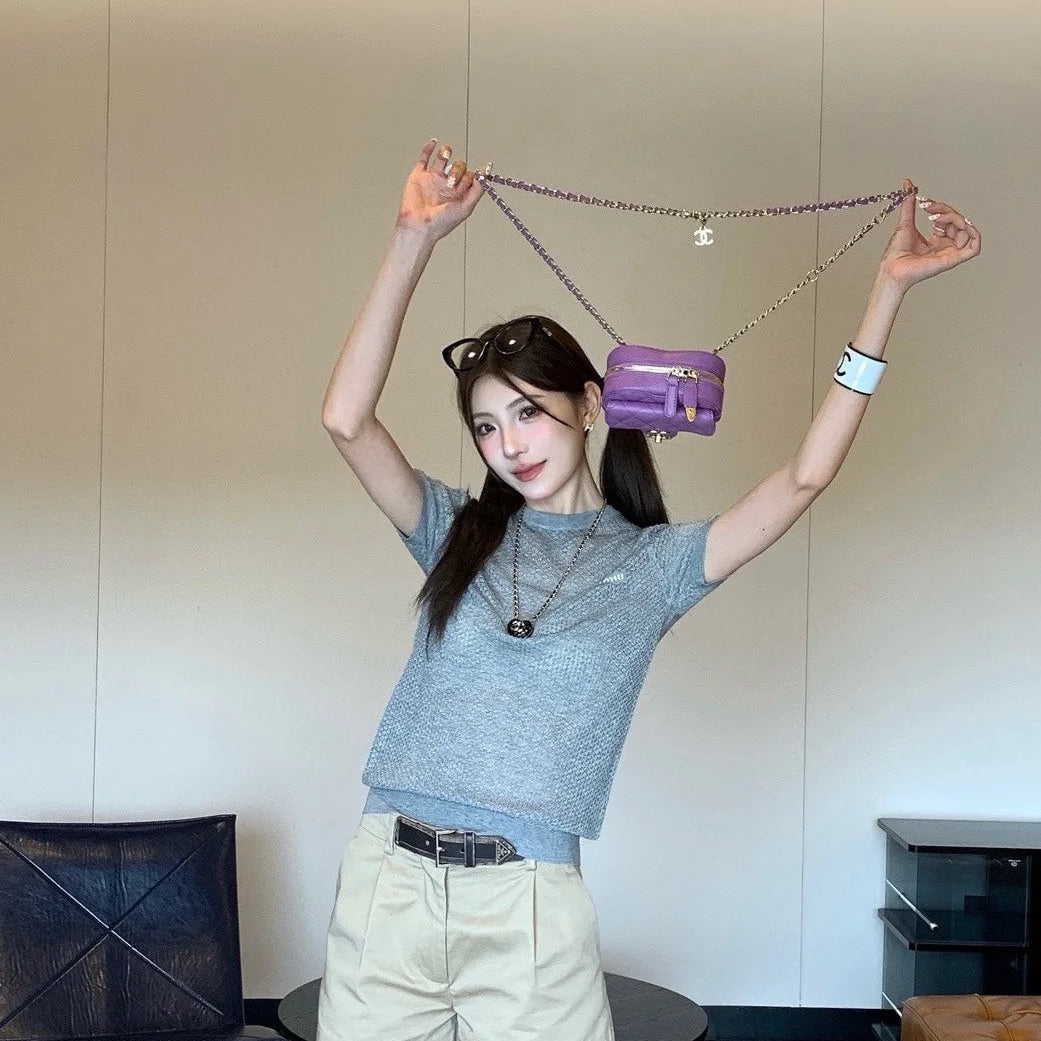 MIUMIU SHORT-SLEEVE KNIT TOP STYLE 410