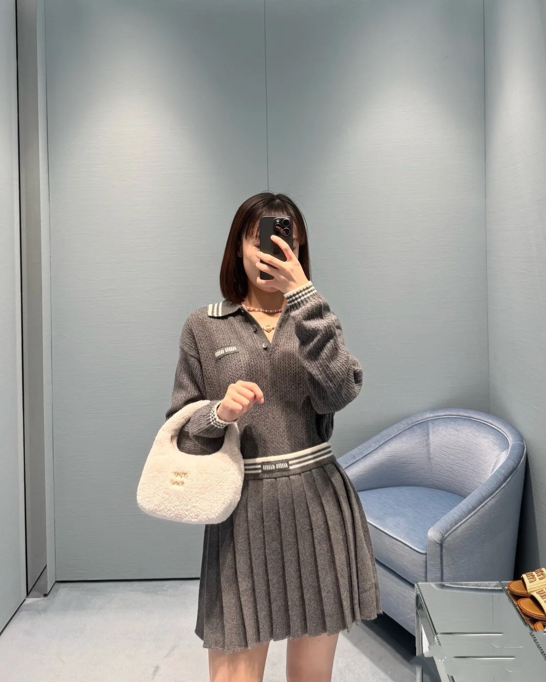 MIUMIU TOP AND SKIRT SET STYLE 373