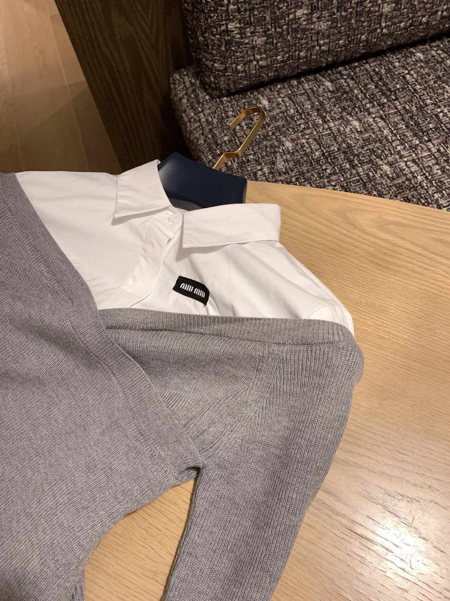 MIUMIU TWO-PIECE COLLARED KNIT SET STYLE 445