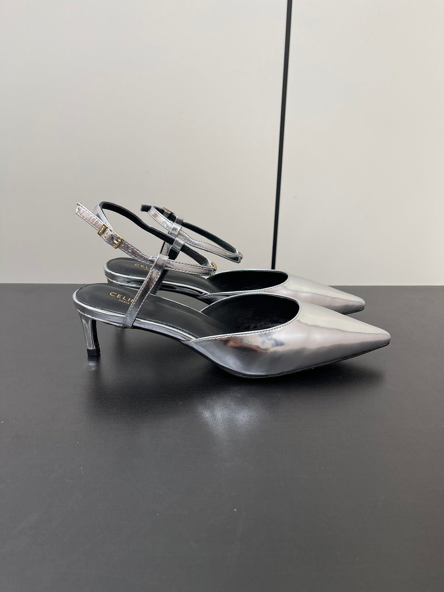 MORRAINE SLINGBACK PUMPS IN SILVER CALFSKIN