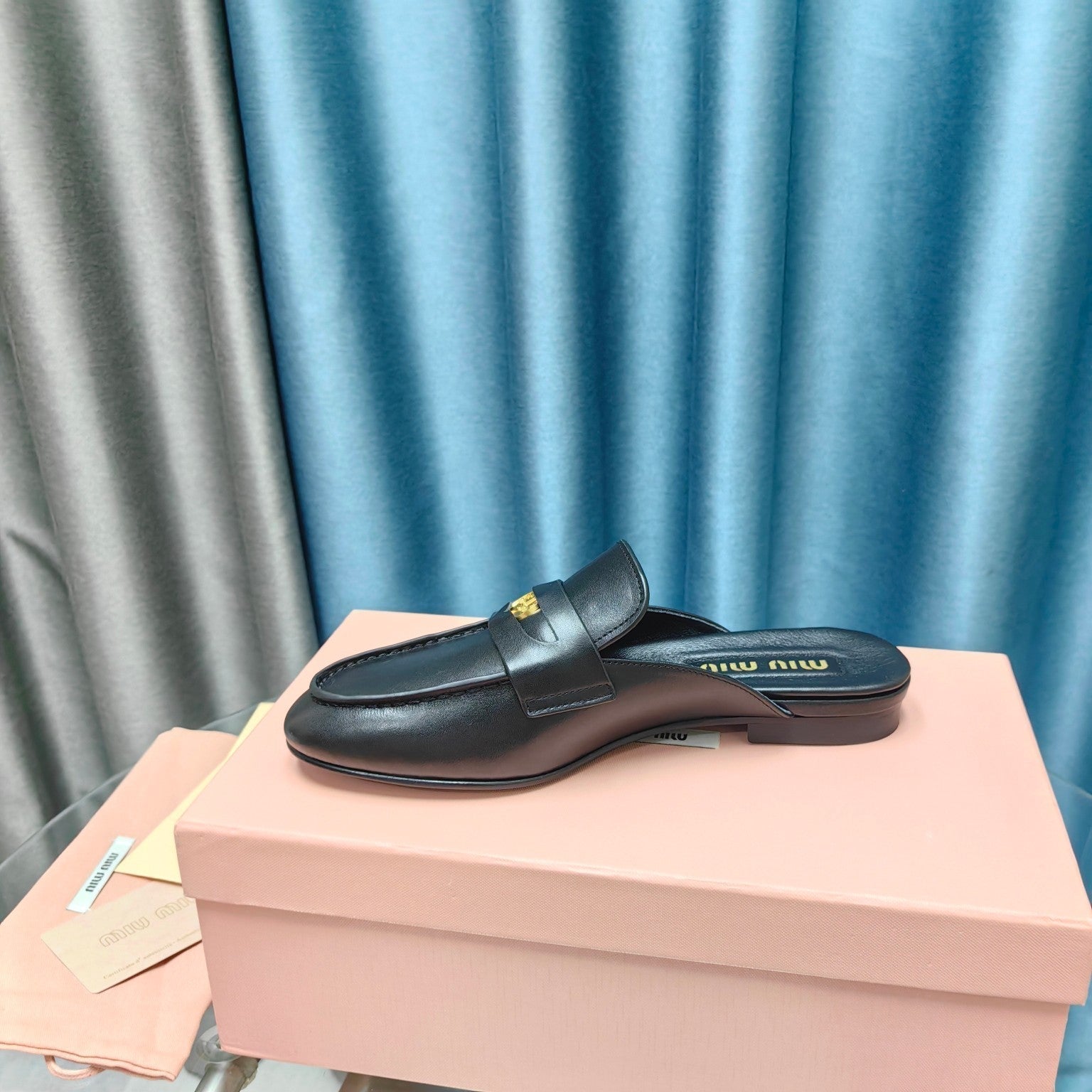 MULES SLIPPERS BLACK COWHIDE WITH GOLD COIN