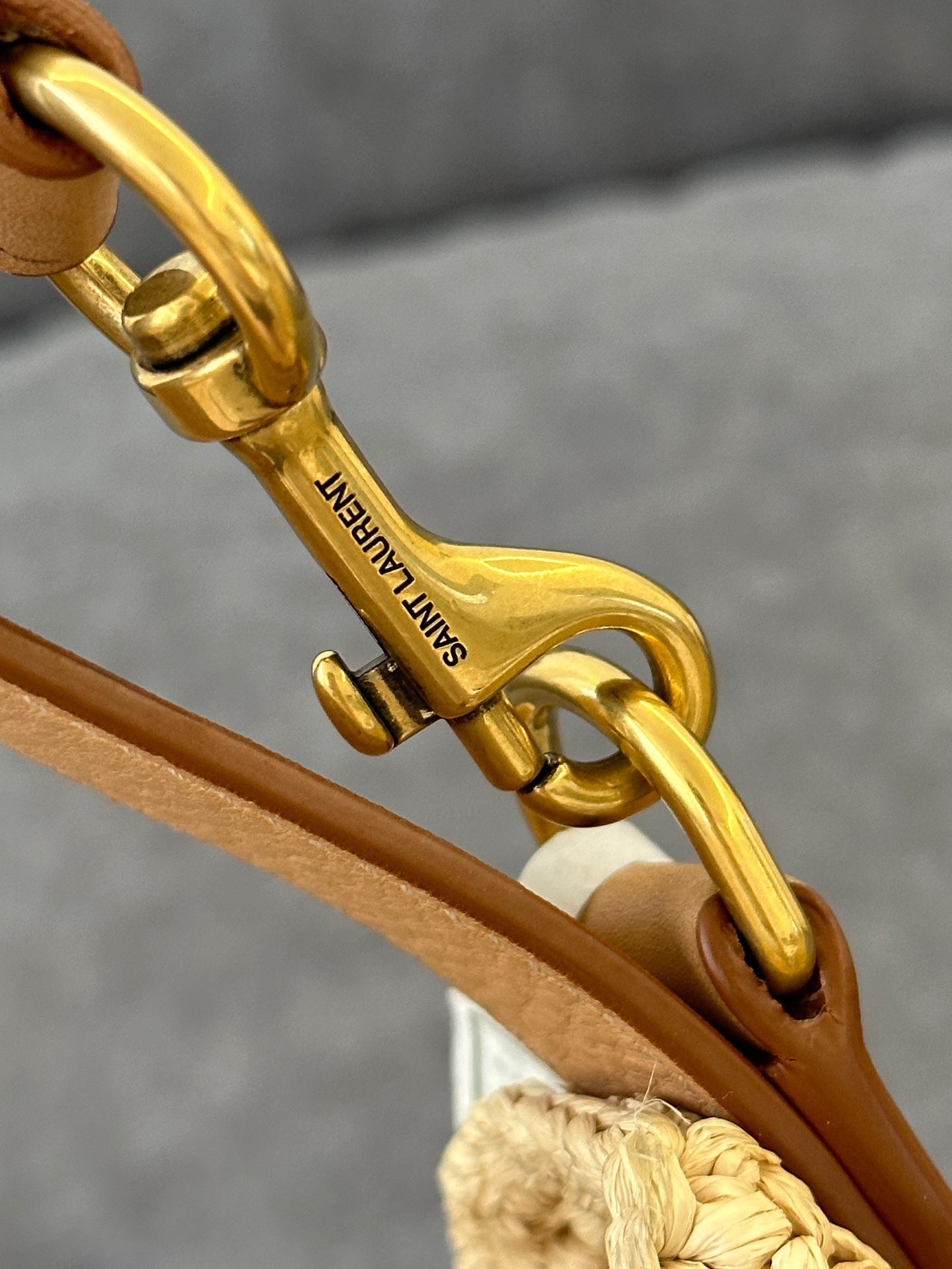 OXALIS 40  IN RAFFIA CROCHET AND LEATHER VINTAGE BROWN