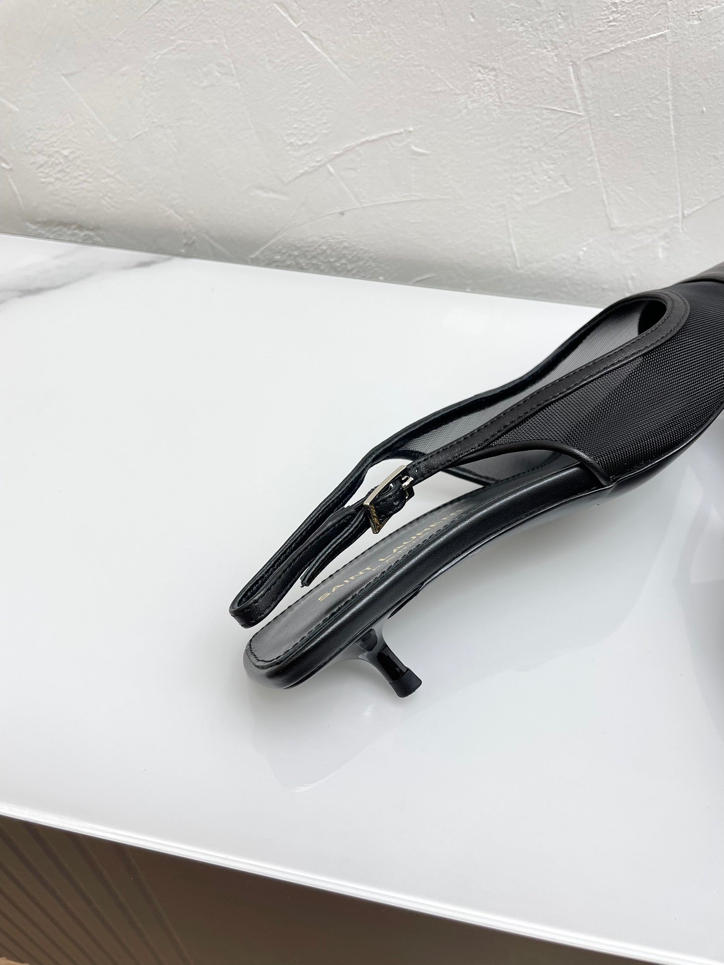 OXALIS SLINGBACK PUMPS 30 IN MESH BLACK LEATHER
