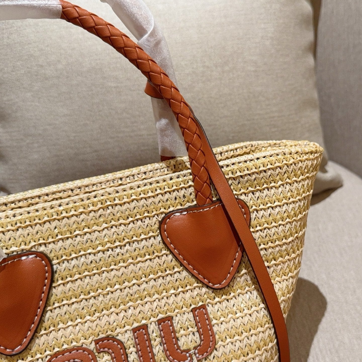 • Material: Woven raffia and Calfskin