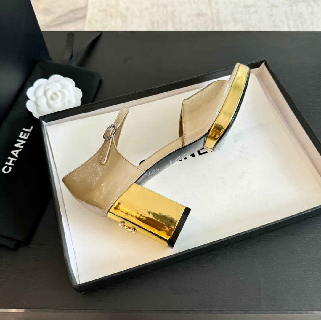 Platform Peep-Toe Sandals Beige Cream Lambskin