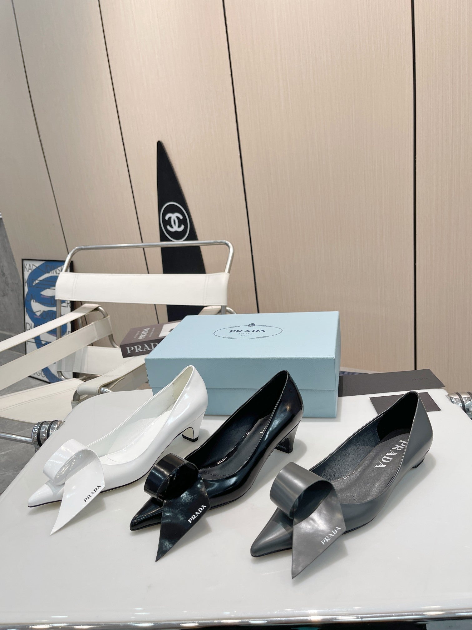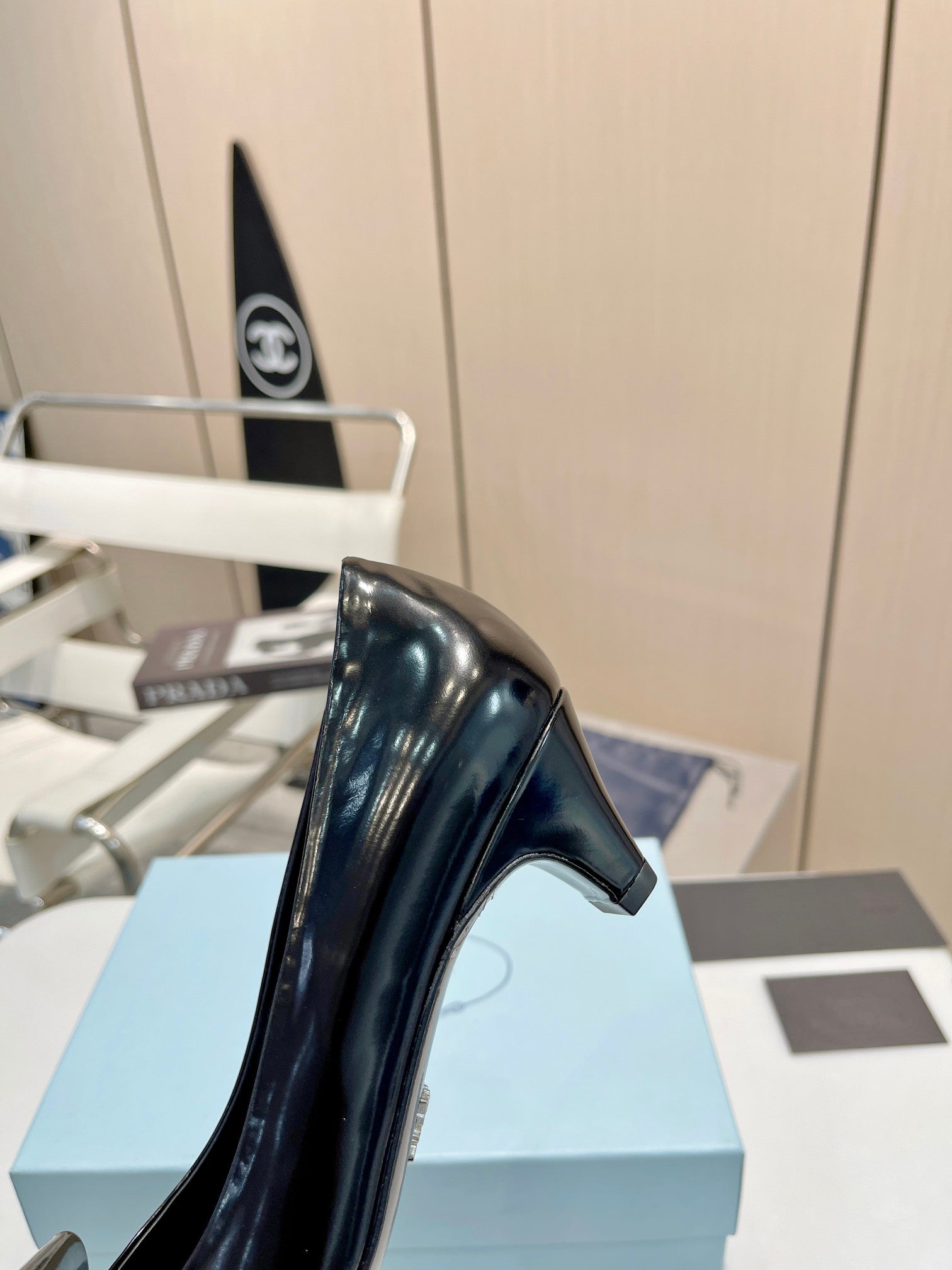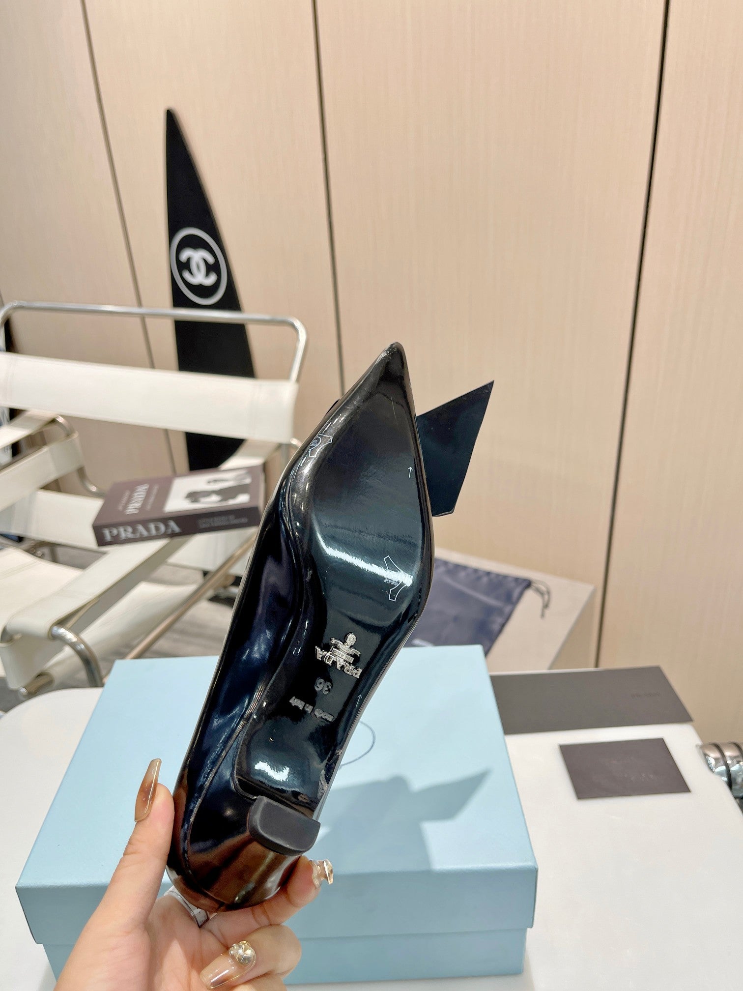 POINTED TOE PUMPS KITTEN HEEL IN BLACK GLOSSY LAMBSKIN WITH BOW