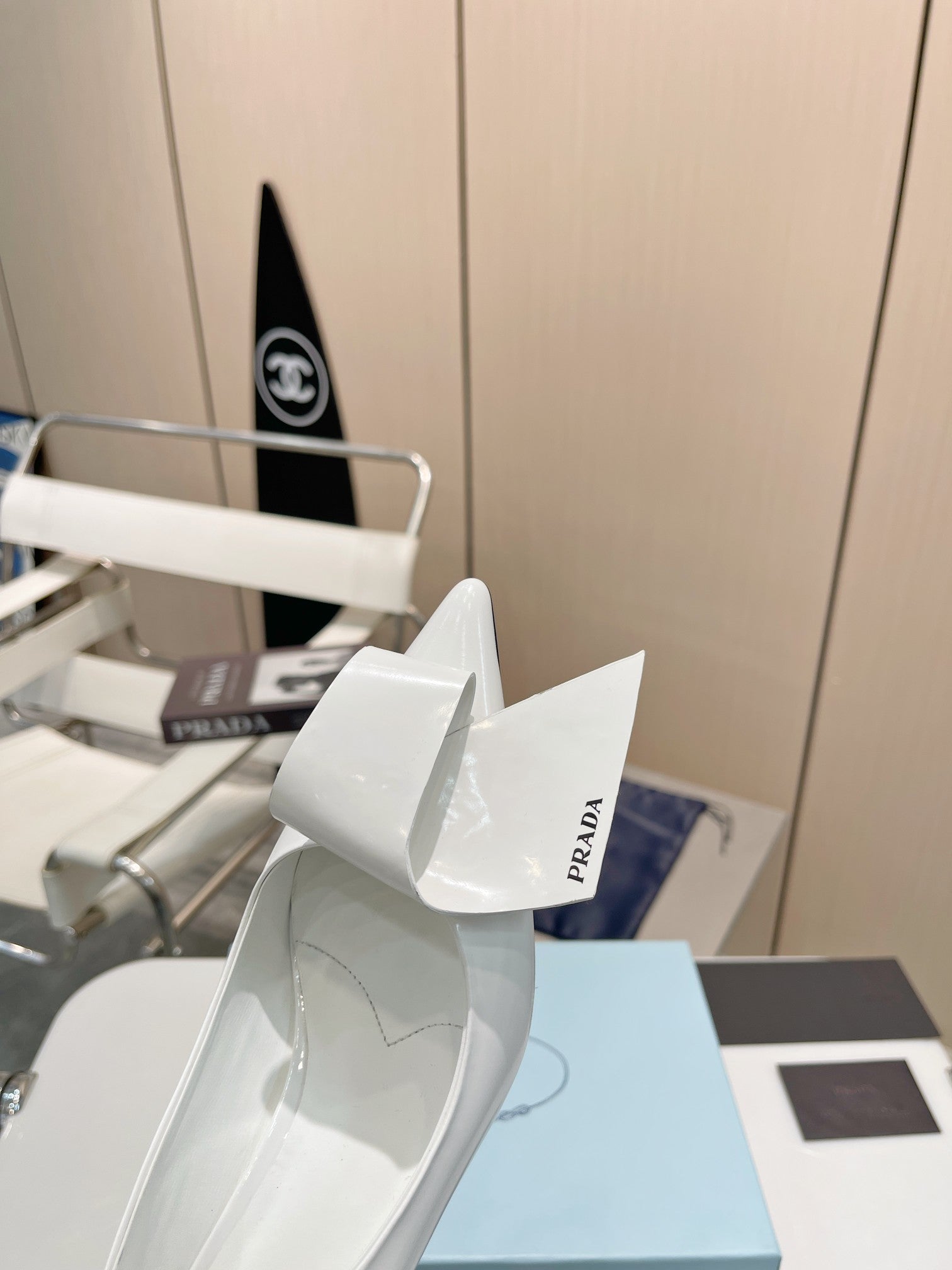 POINTED TOE PUMPS KITTEN HEEL IN WHITE GLOSSY LAMBSKIN WITH BOW
