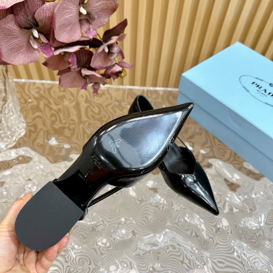 PRA BRUSHED CUT-OUT PUMPS BLACK CALFSKIN