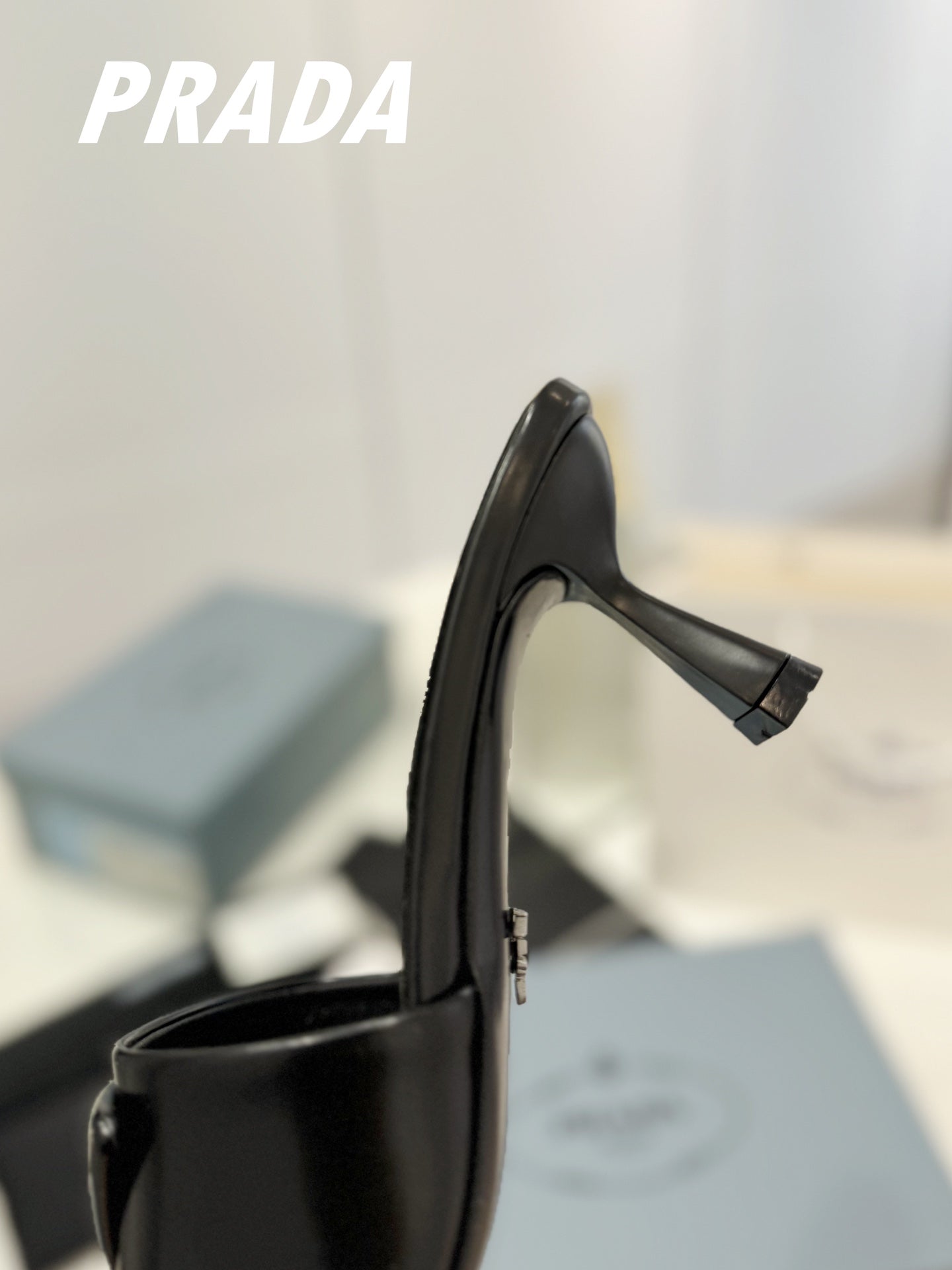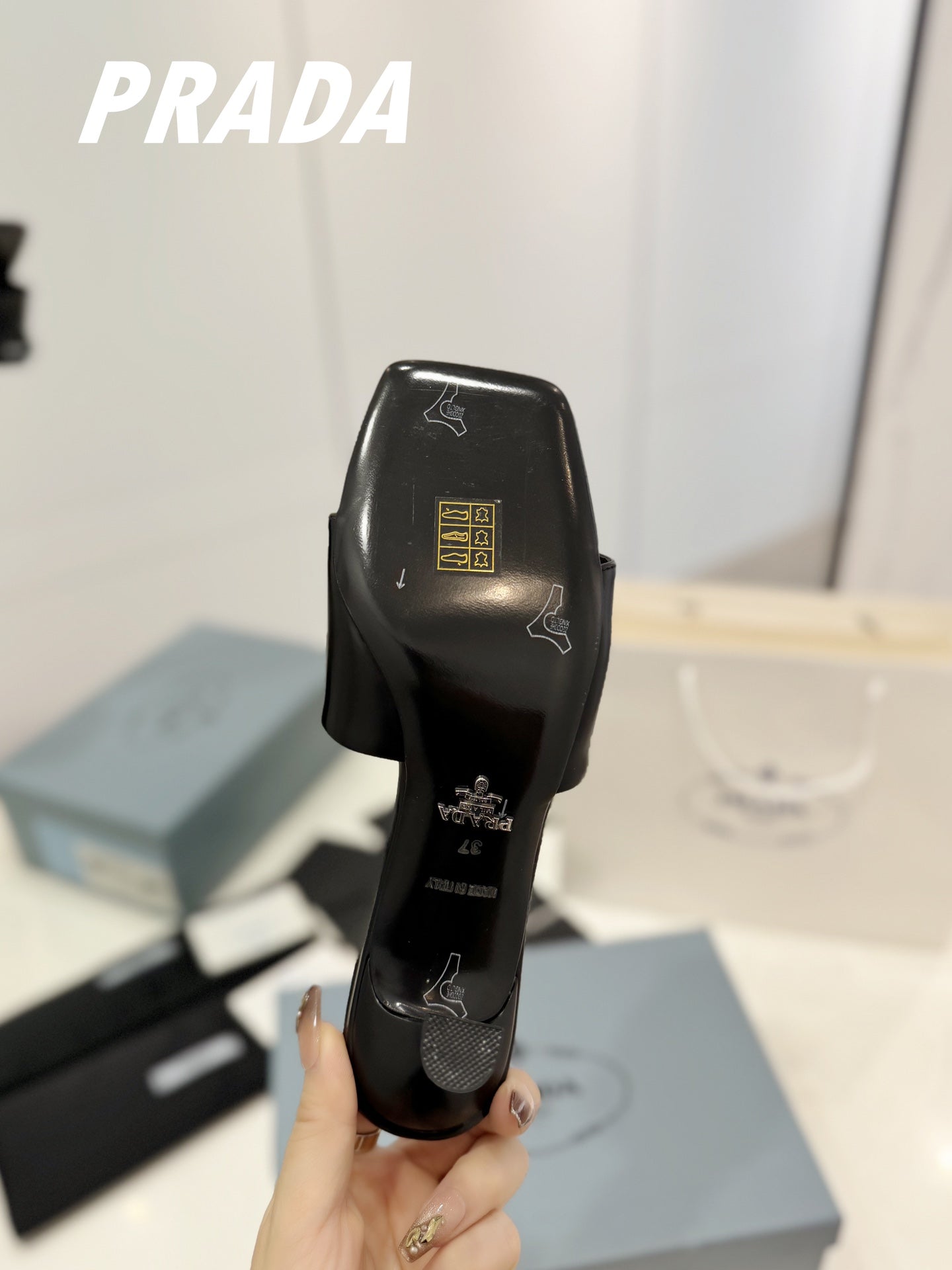 PRA BRUSHED LEATHER HEELED SLIDES BLACK
