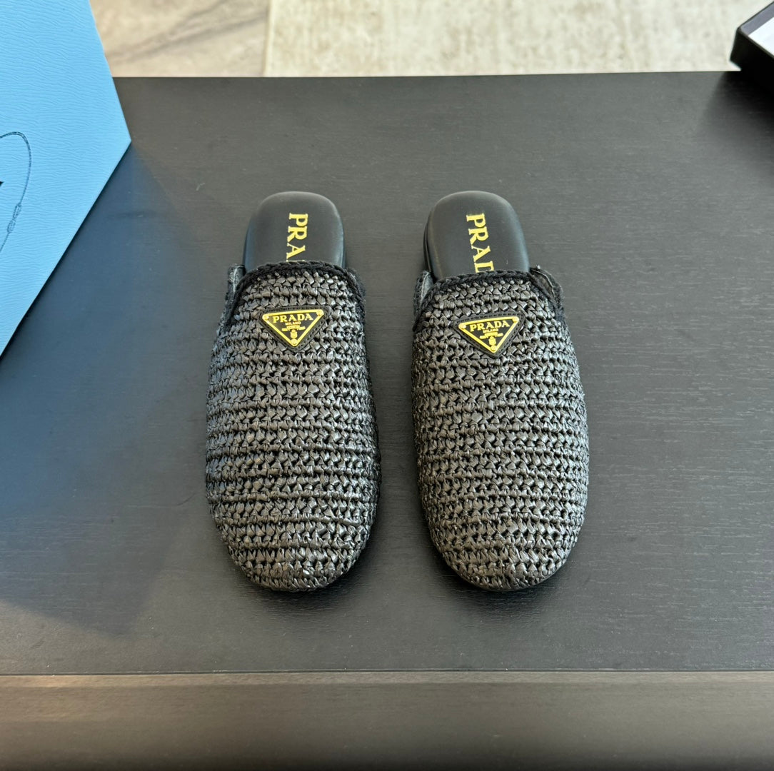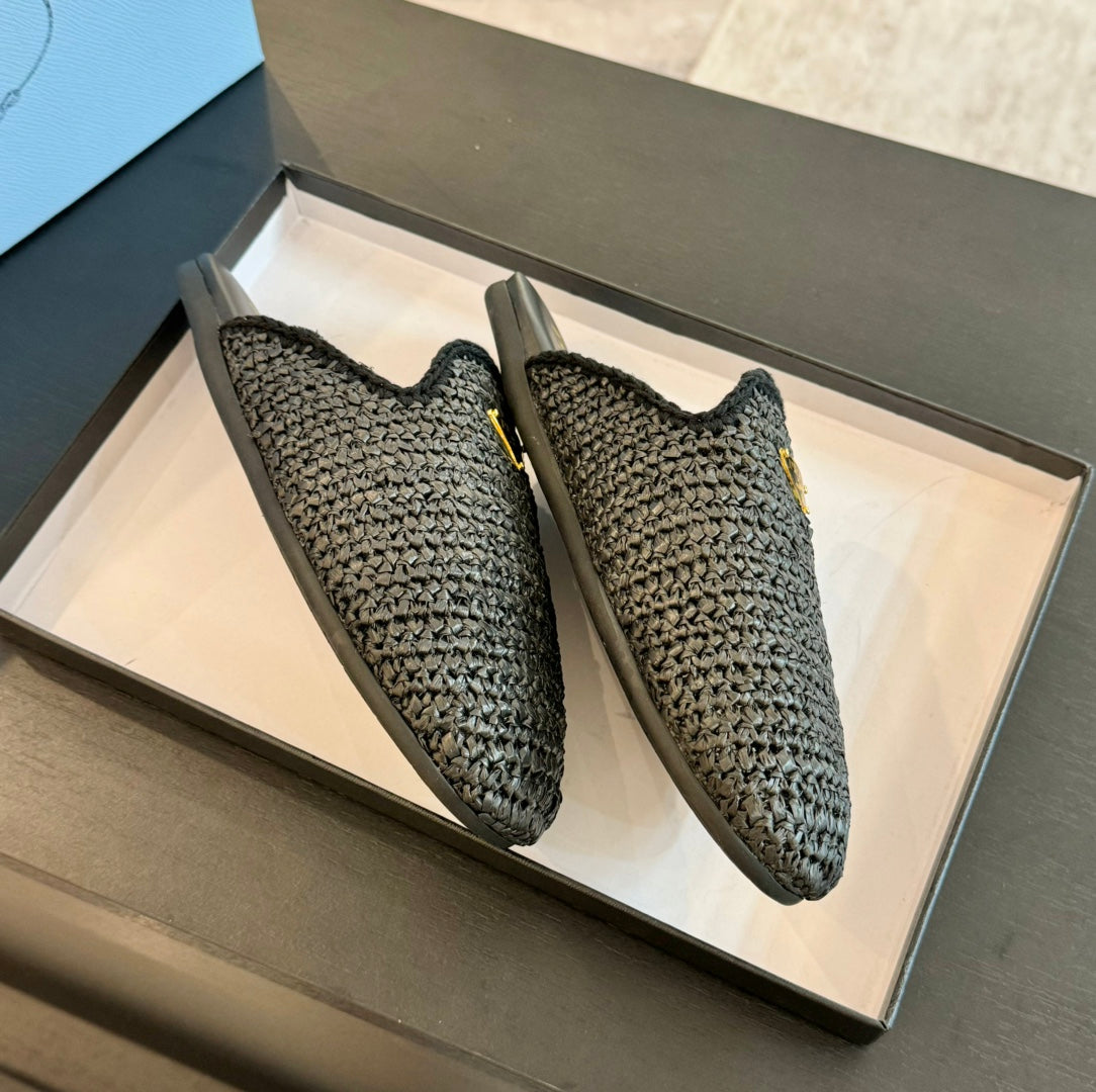 PRA CROCHET MULES BLACK LAMBSKIN