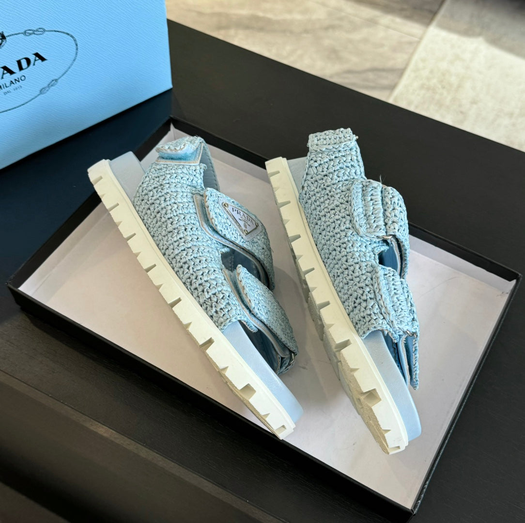 PRA CROCHET SANDALS SKY CALFSKIN