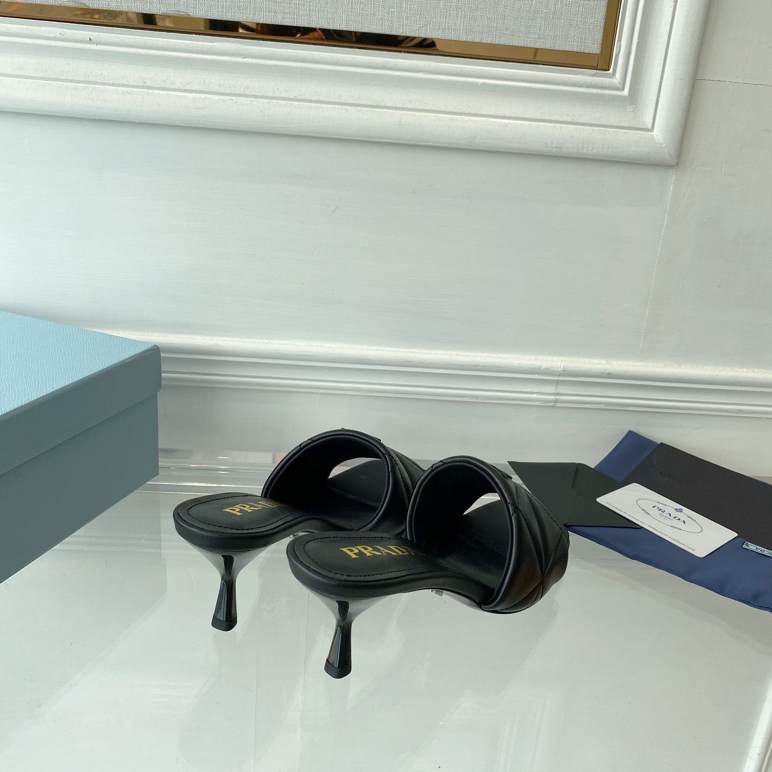 Pra Heeled Sandal 65 Pointed Sole Quilted Black Leather
