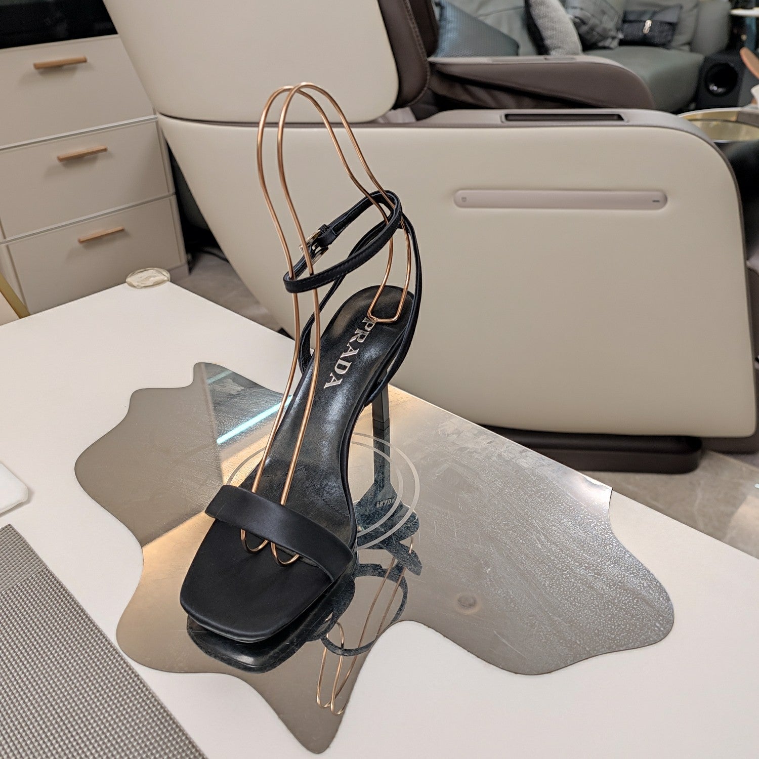 PRA HIGH-HEELED SANDALS BLACK SATIN