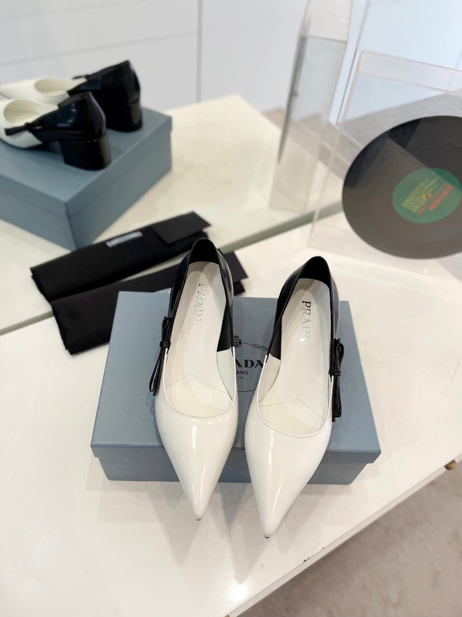 PRA MID - HEELS WHITE AND BLACK LAMBSKIN WITH BOW