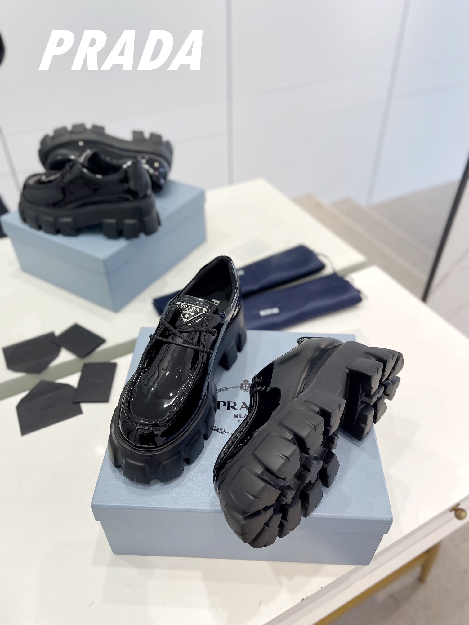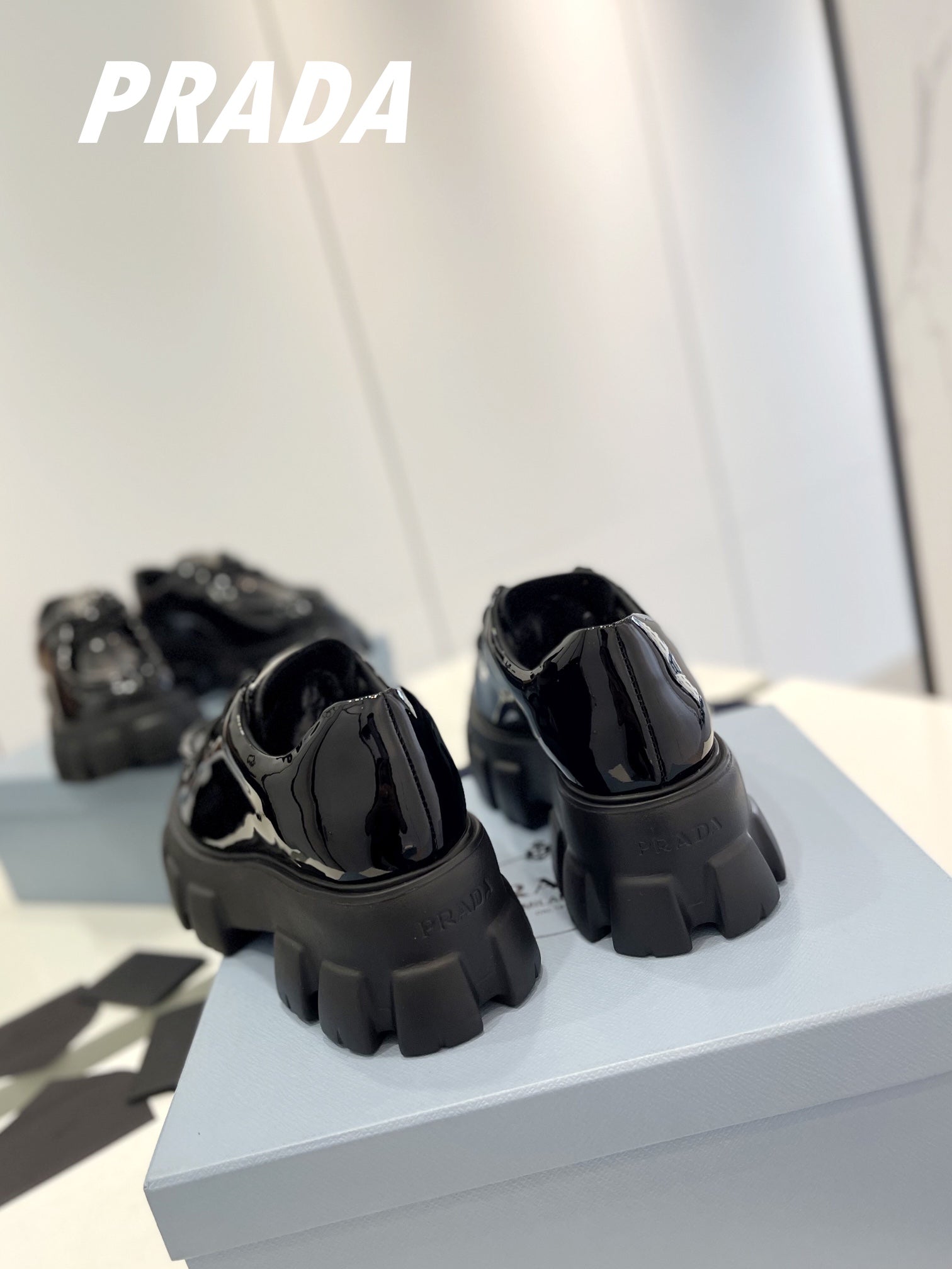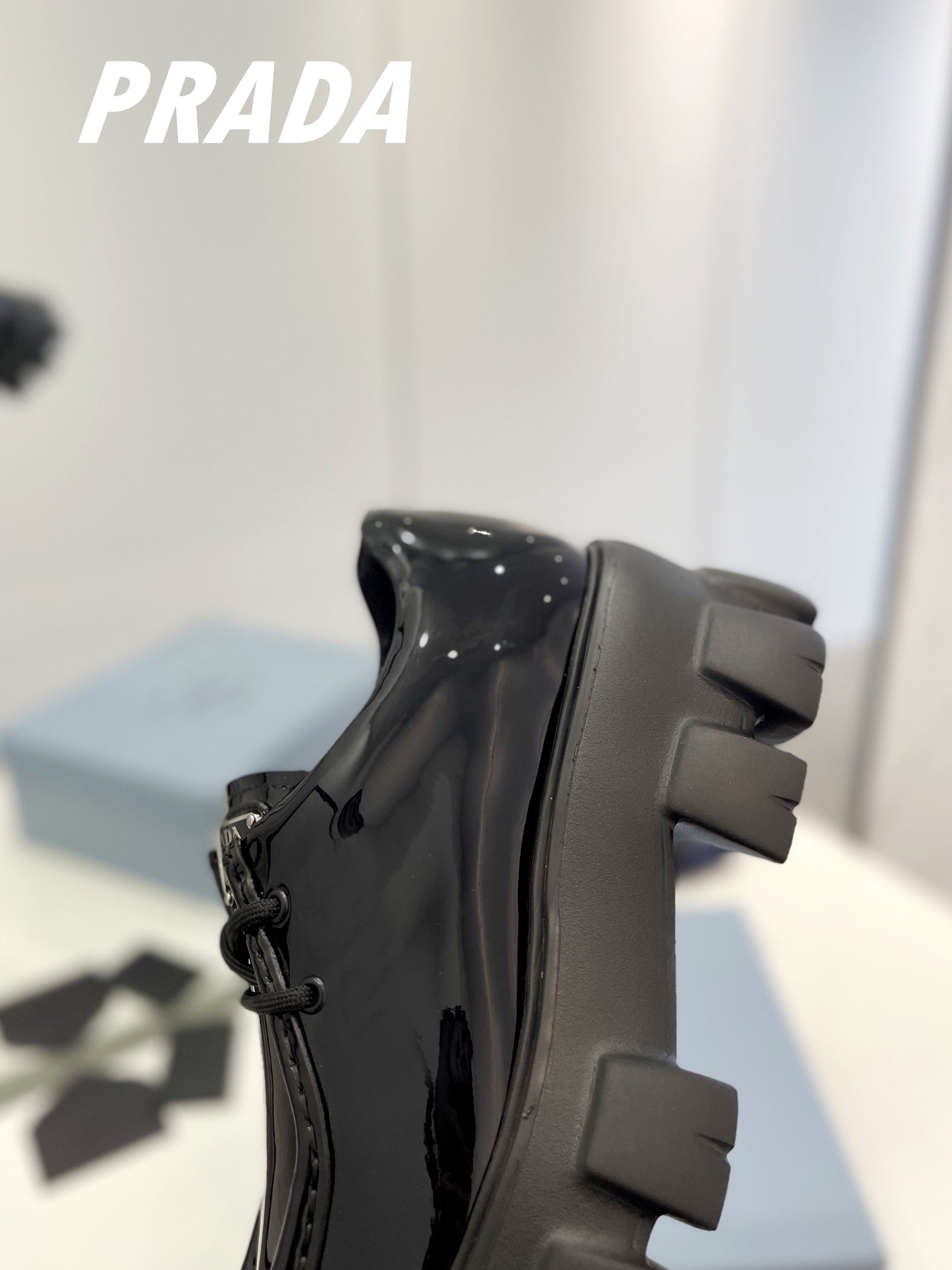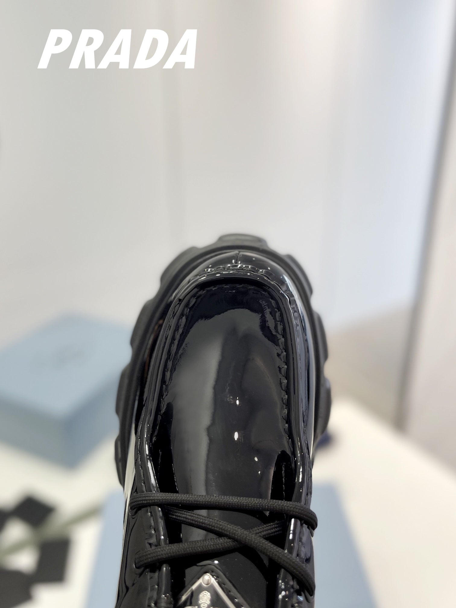 PRA MONOLITH LACE-UP LOAFERS GLOSSY BLACK CALFSKIN