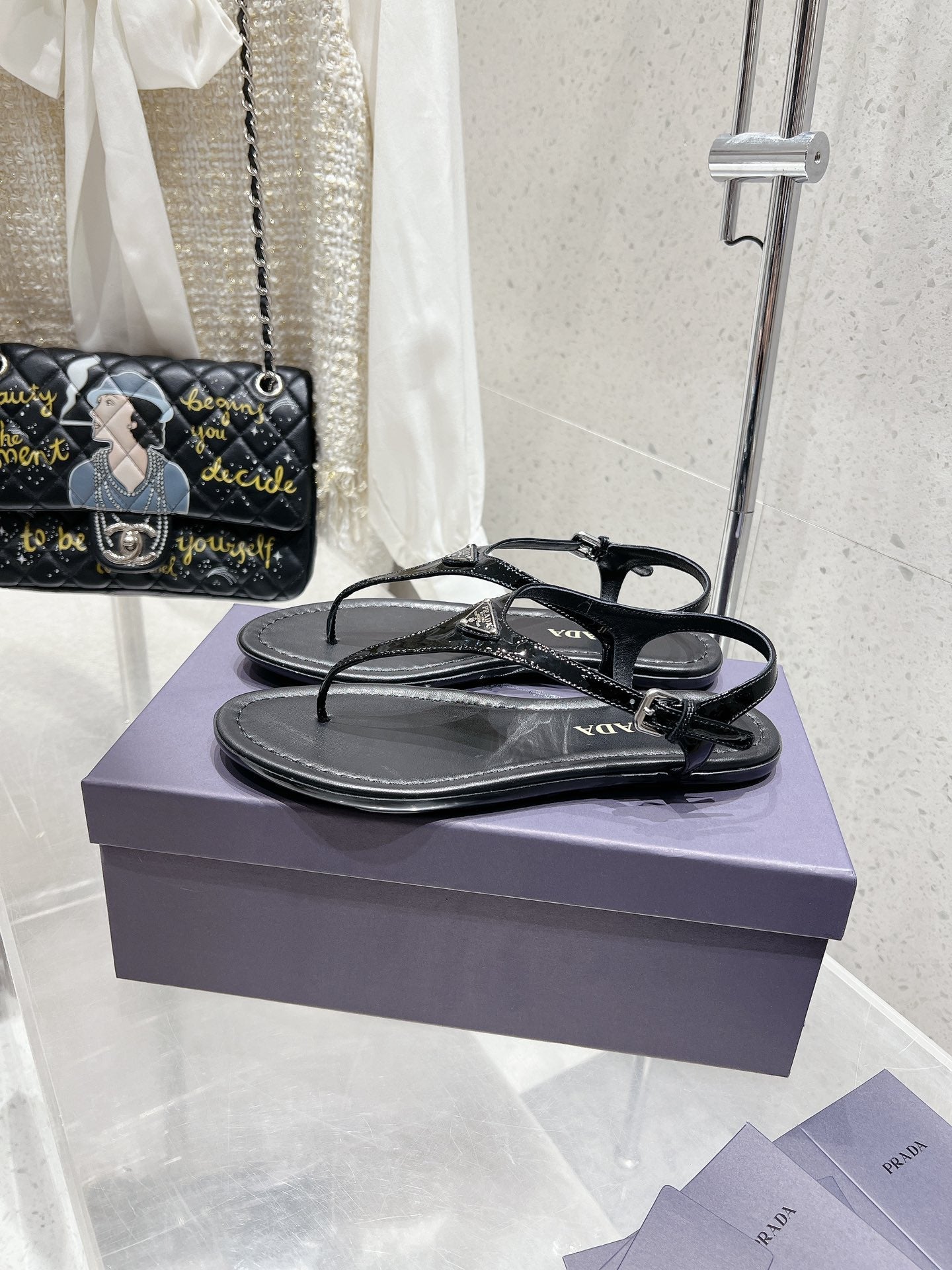 PRA PATENT LEATHER THONG SANDALS BLACK