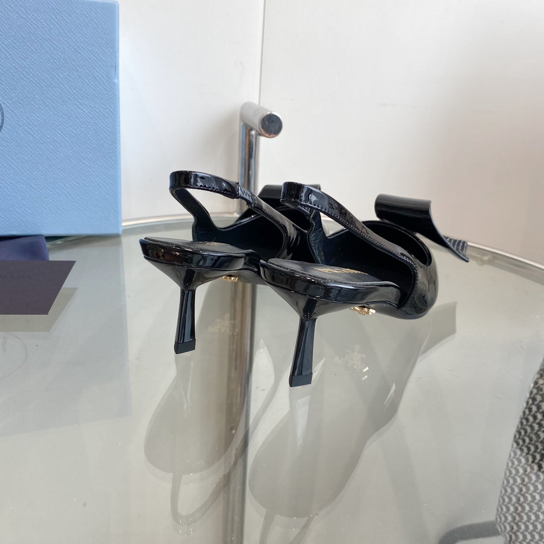 PRA SLINGBACK PUMPS GLOSSY BLACK ATTACHED BOW LAMBSKIN