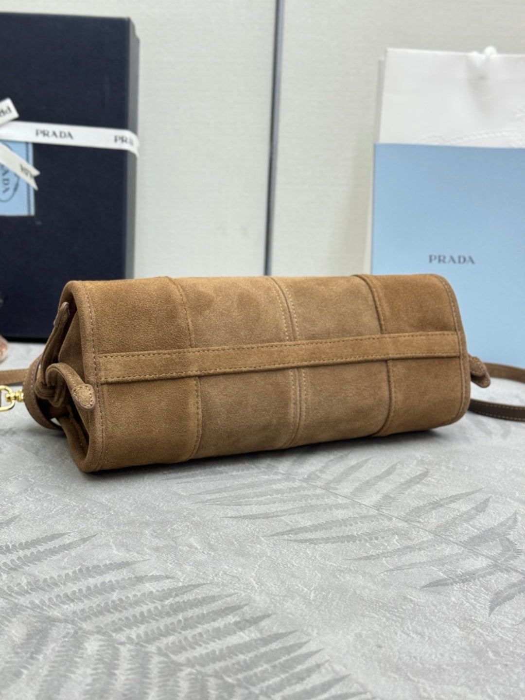 PRADA 25S BONNIE SMALL SHOULDER BAG 26 IN BROWN SUEDE GOLD HARDWRE