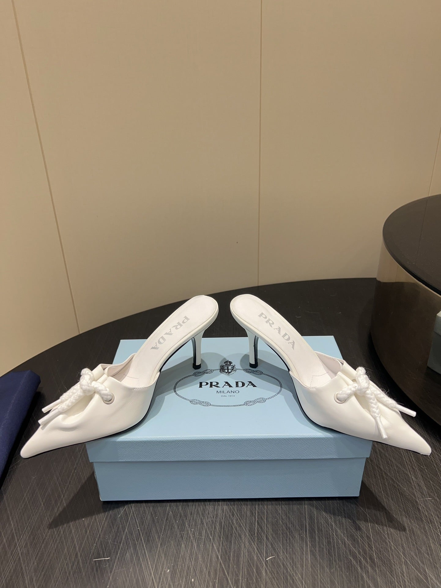 PRADA 25S BRAIDED DETAIL MULES 85MM IN WHITE CALFSKIN