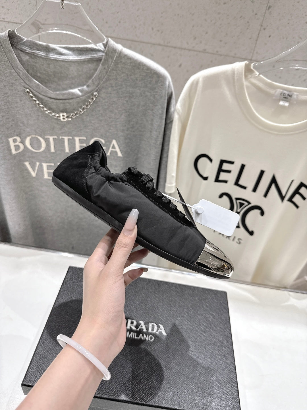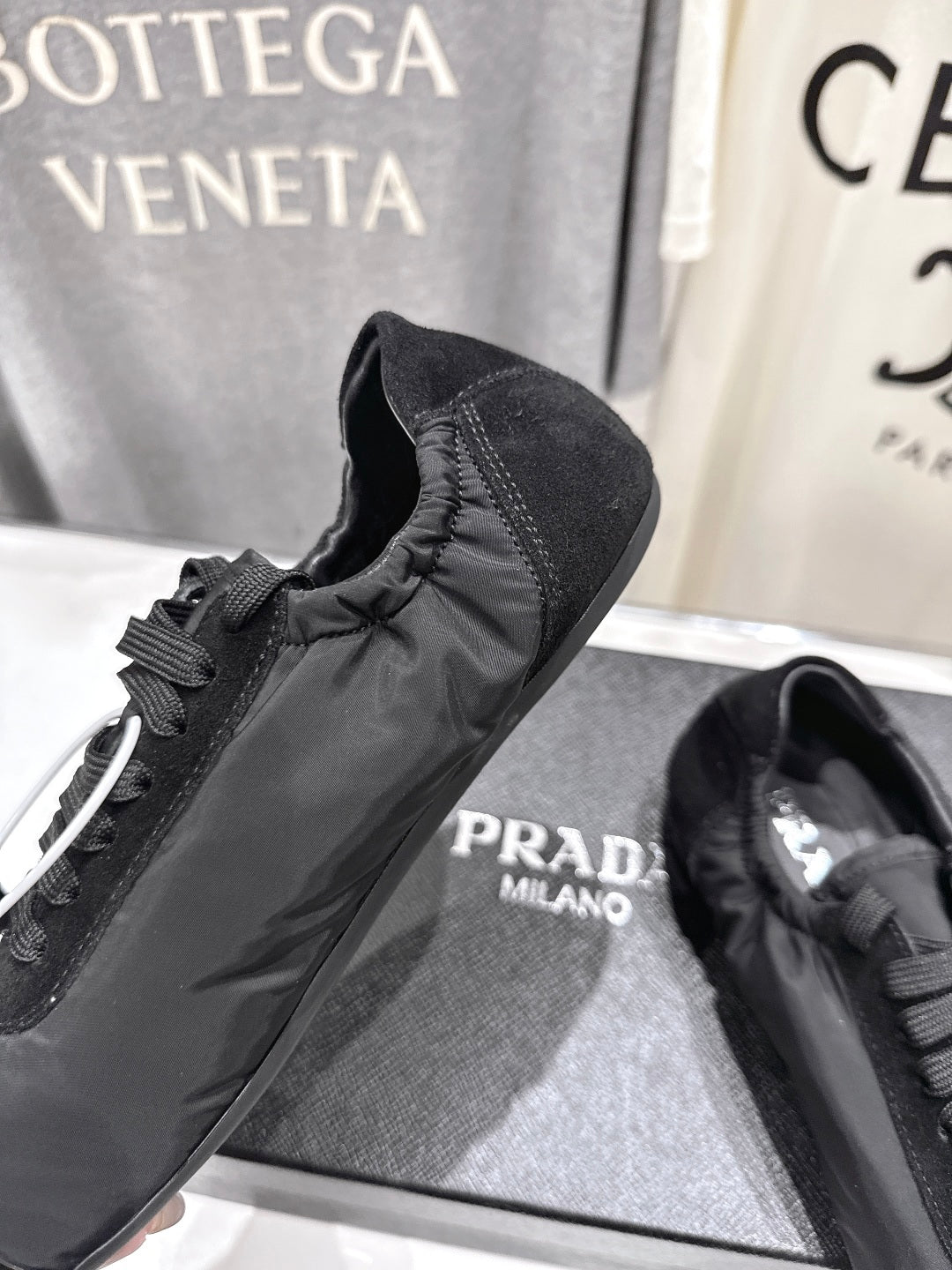 PRADA 25S COLLAPSE RE NYLON AND SUEDE SNEAKERS IN BLACK WITH METAL TOECAP