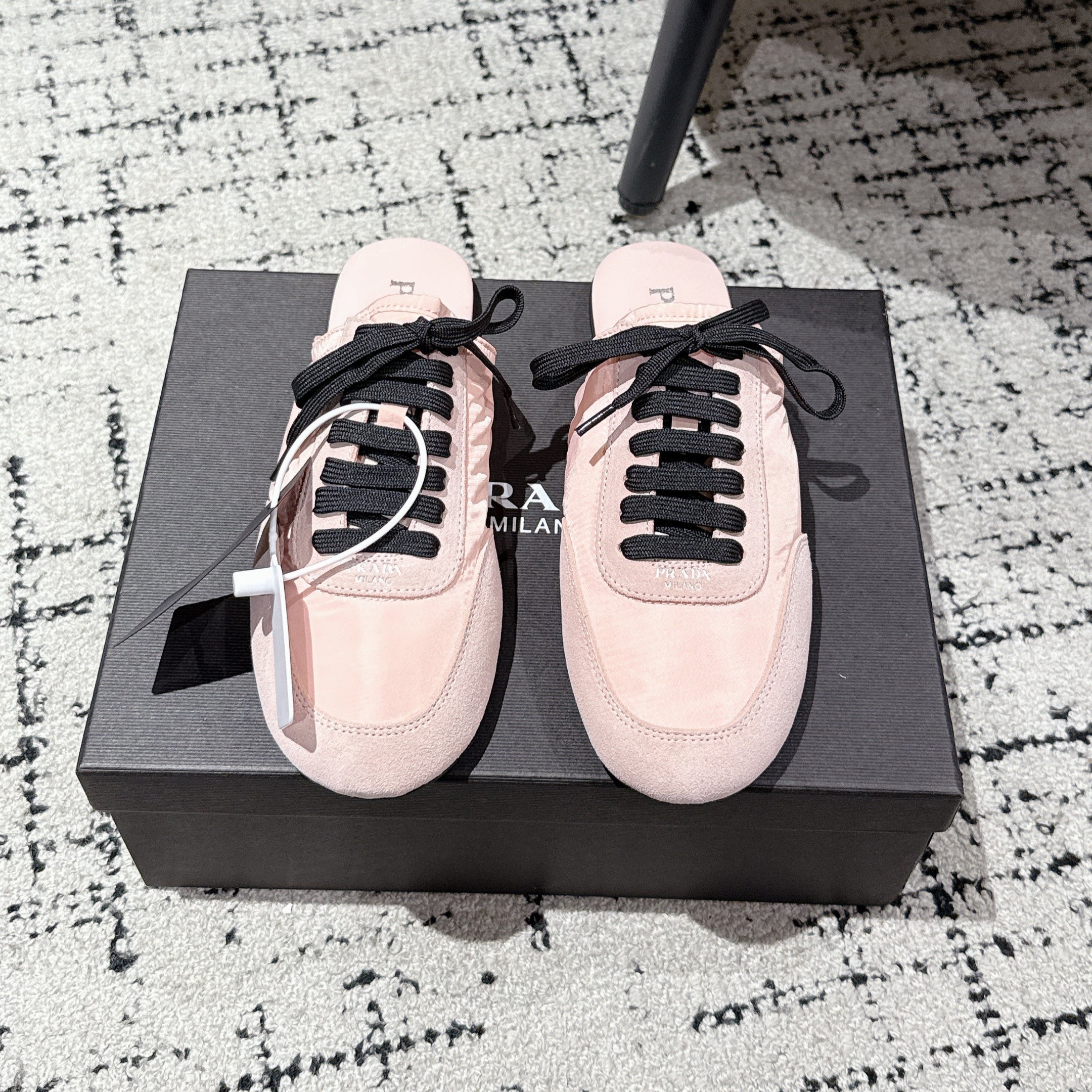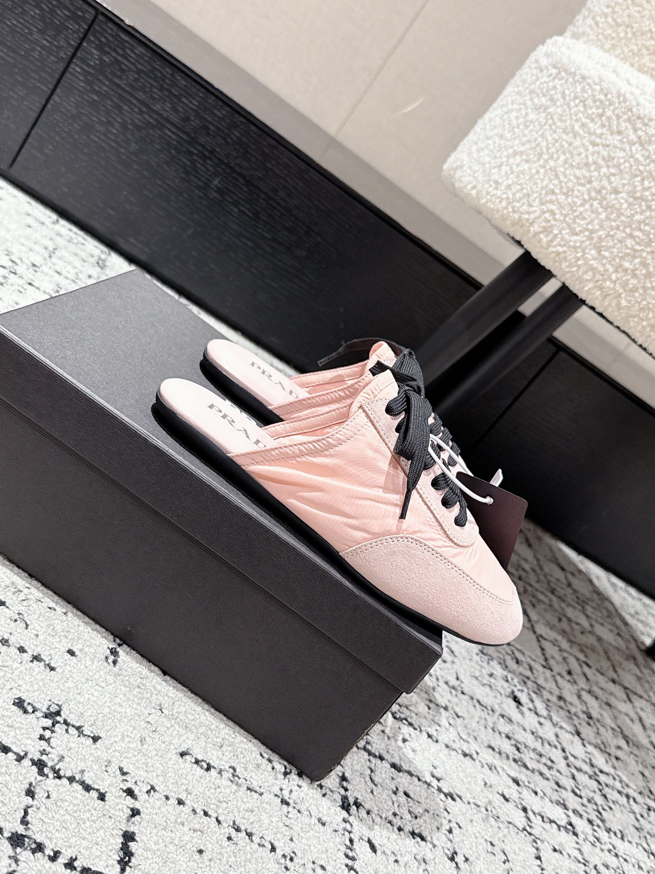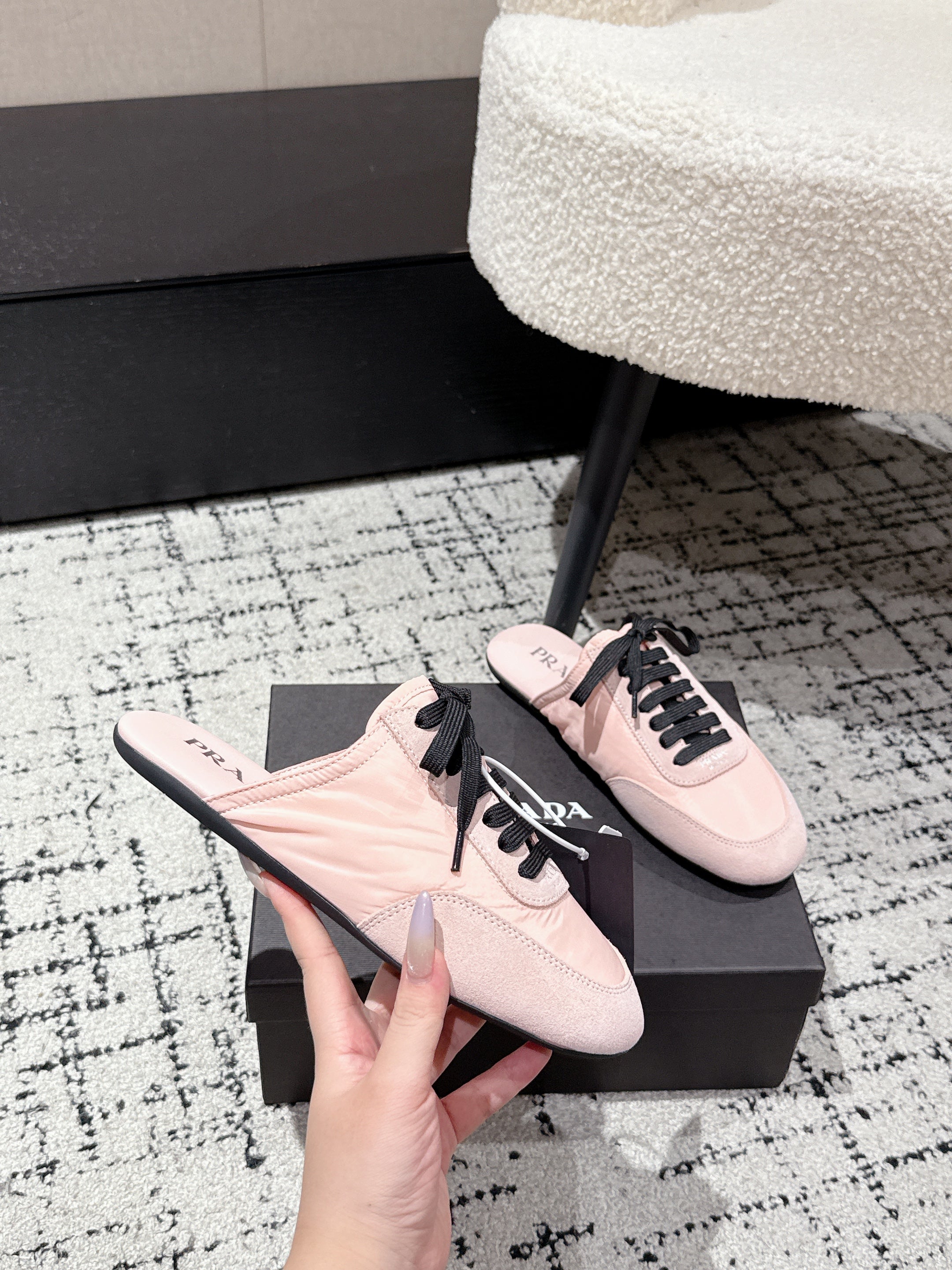 PRADA 25S DEXUN MULE IN LIGHT PINK SUEDE LEATHER