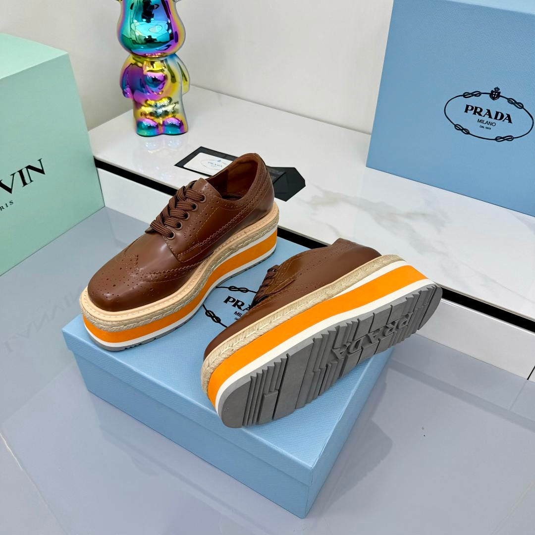 PRADA 25S FLAT WEDGE SHOES 60MM IN DARK BROWN CALFSKIN