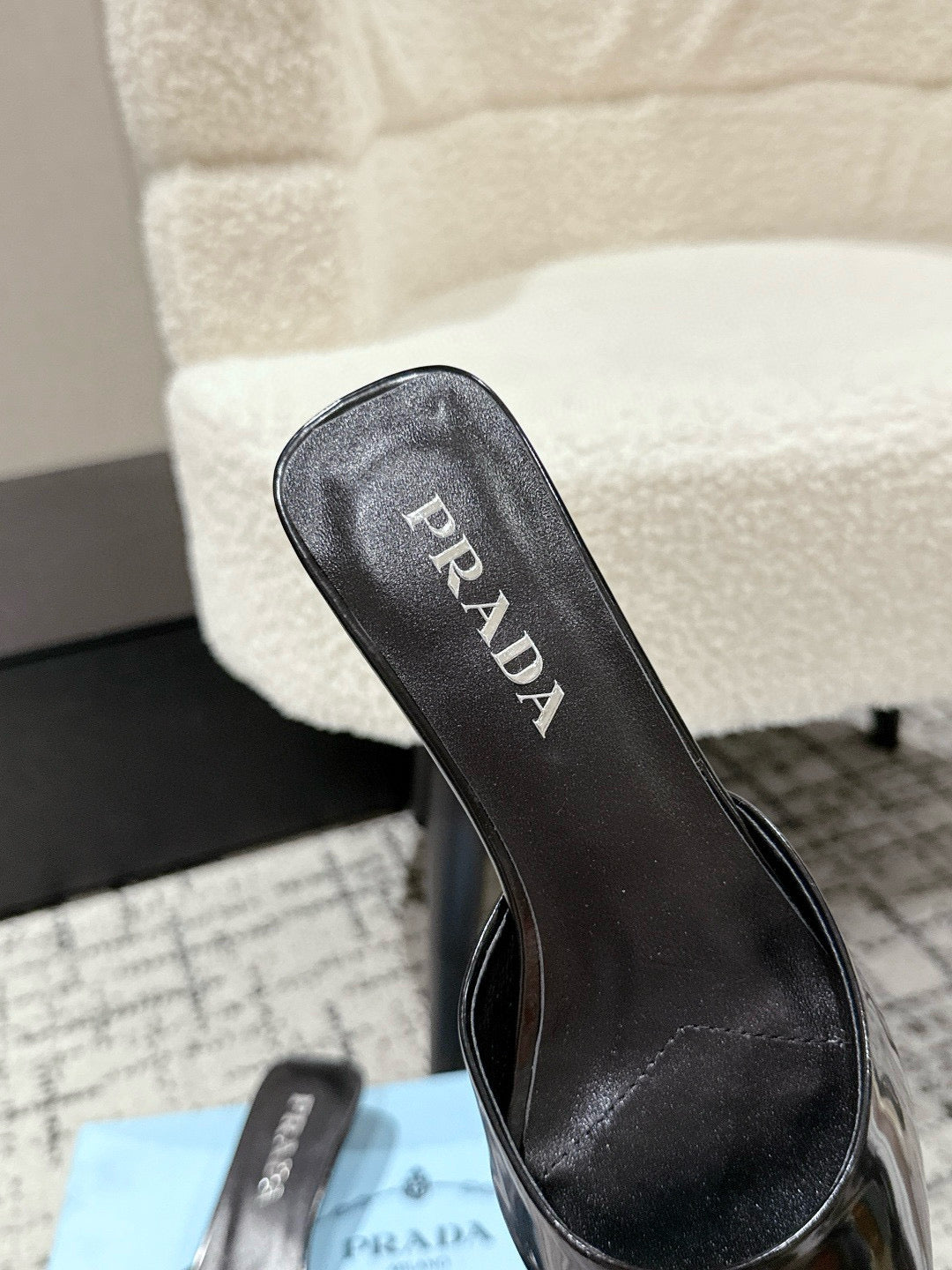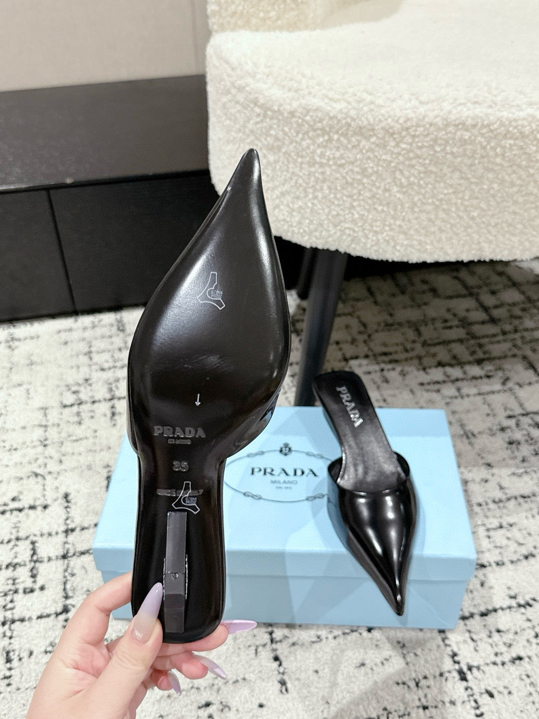 PRADA 25S POINTED-TOE MULES IN BLACK CALFSKIN