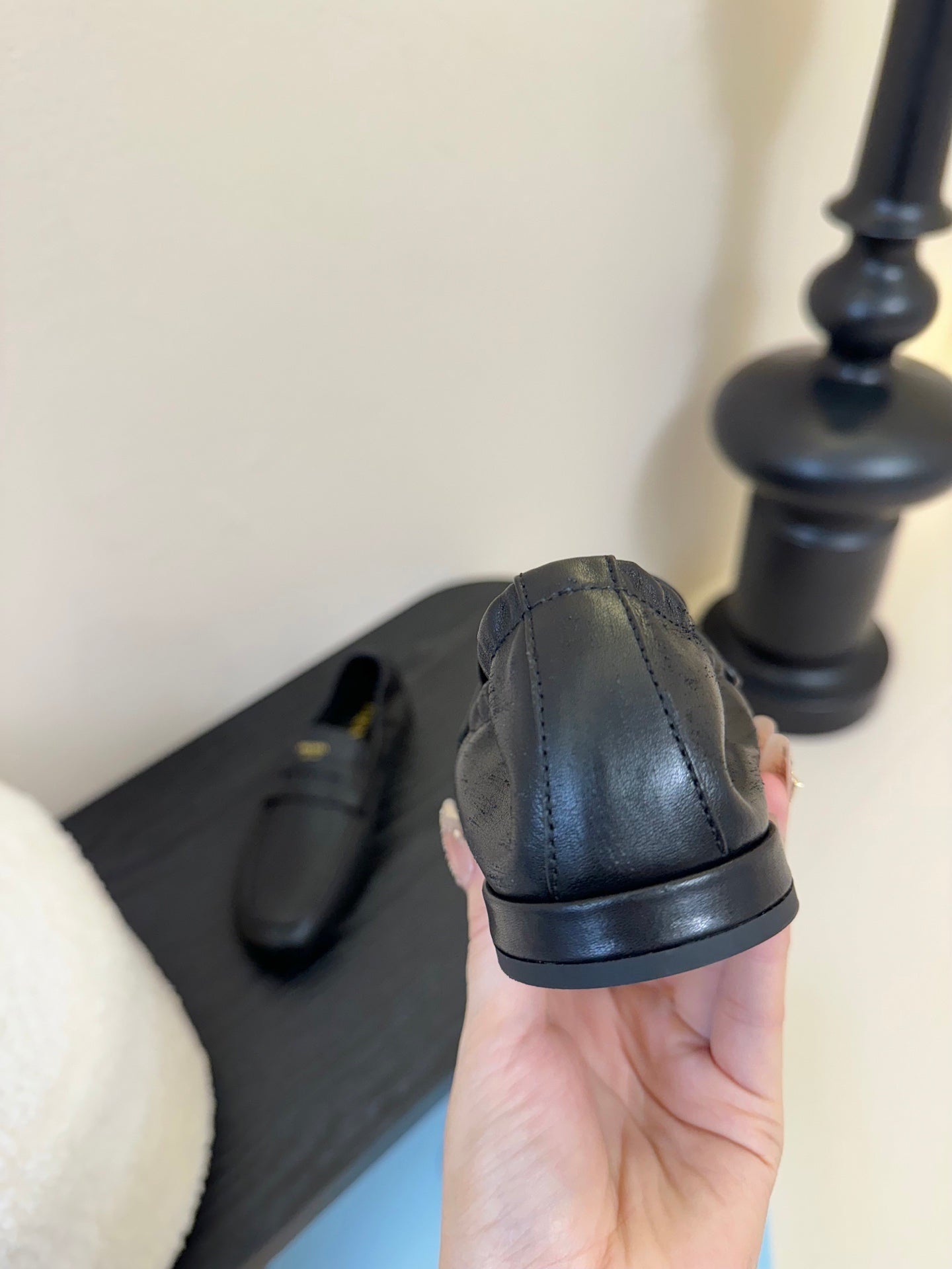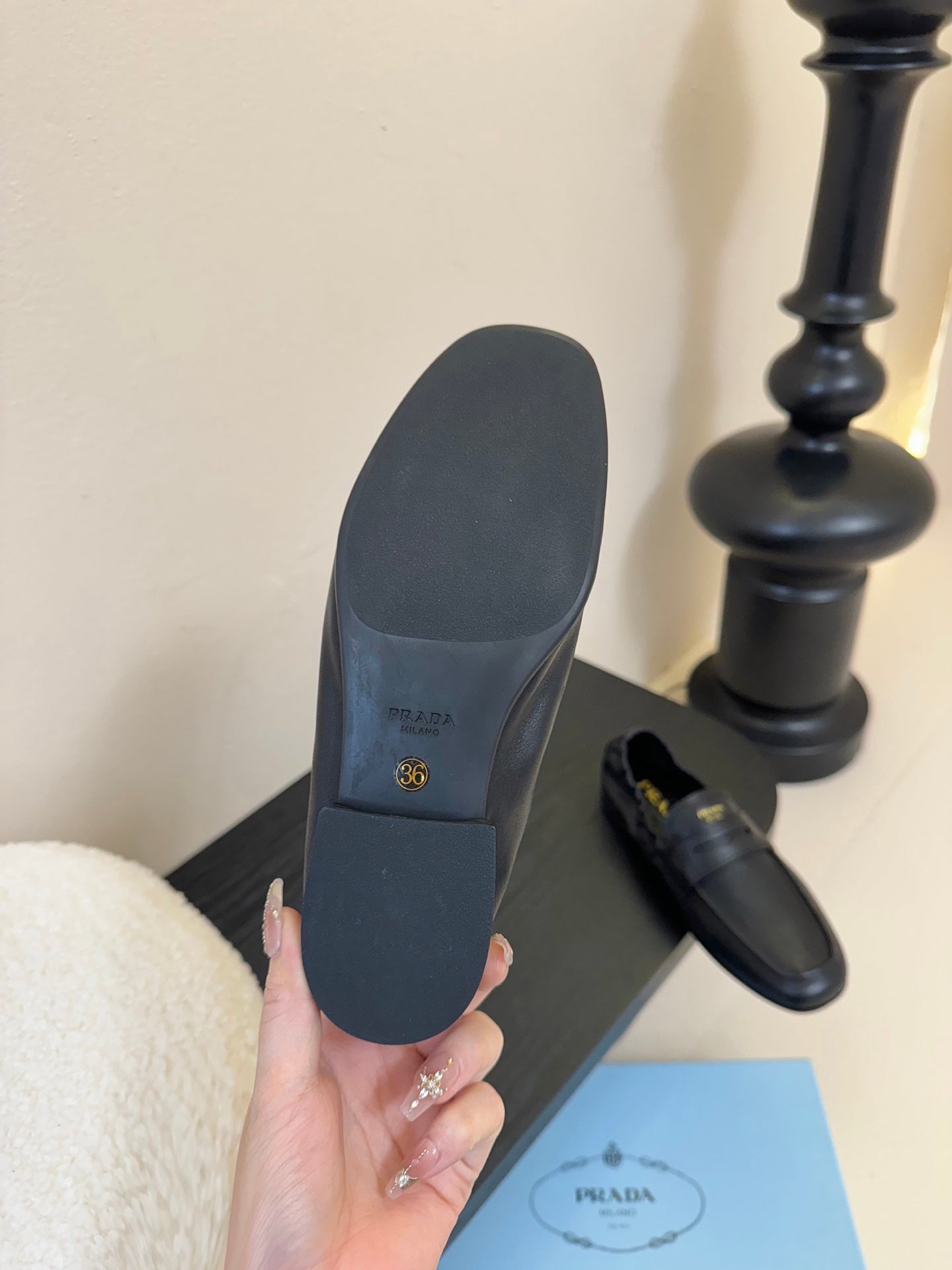 PRADA 25S SHUFFLE LOAFERS IN BLACK CALFSKIN