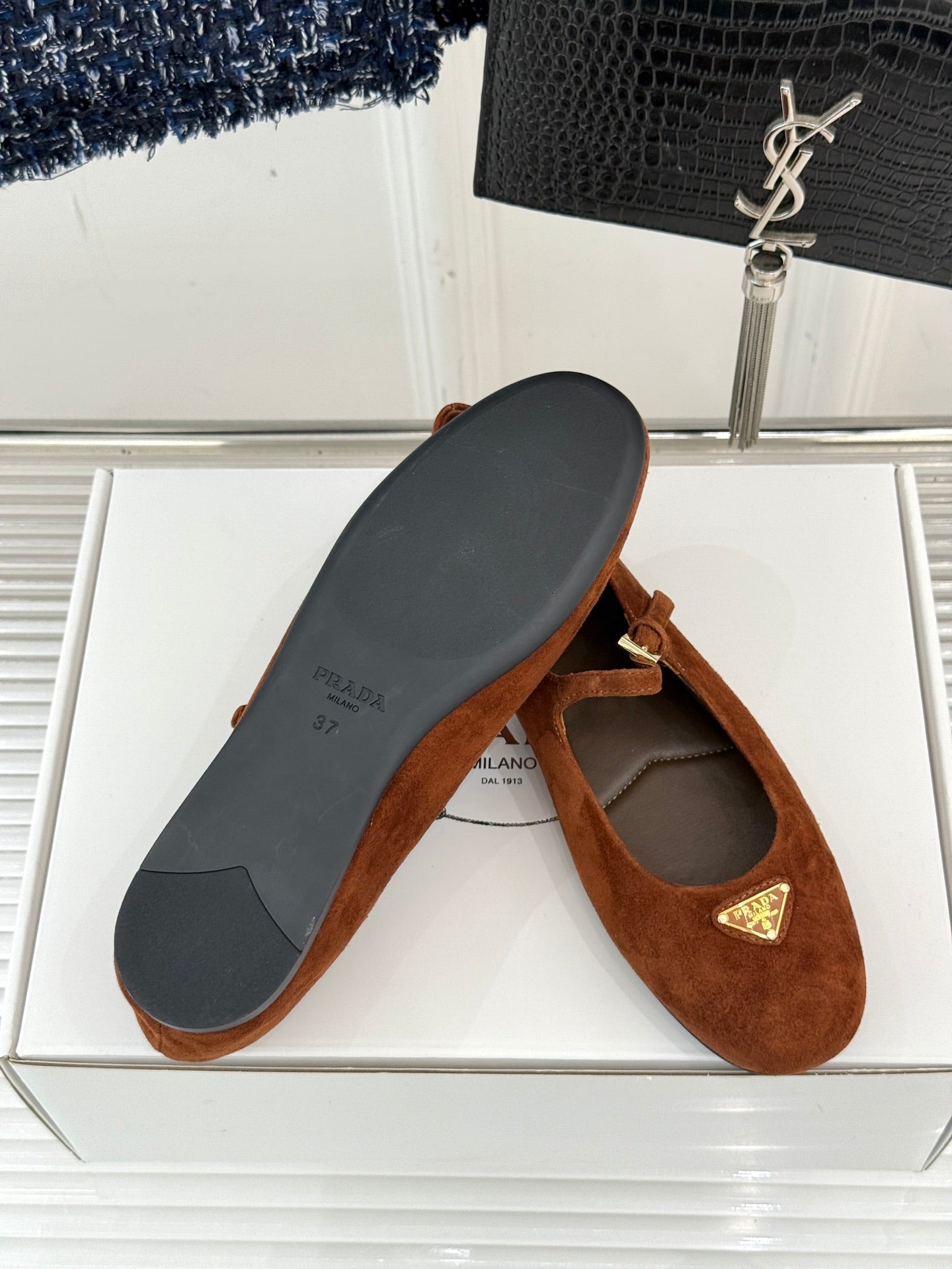 PRADA 25S SOFT PADDED BALLERINAS IN BURNT ORANGE SUEDE
