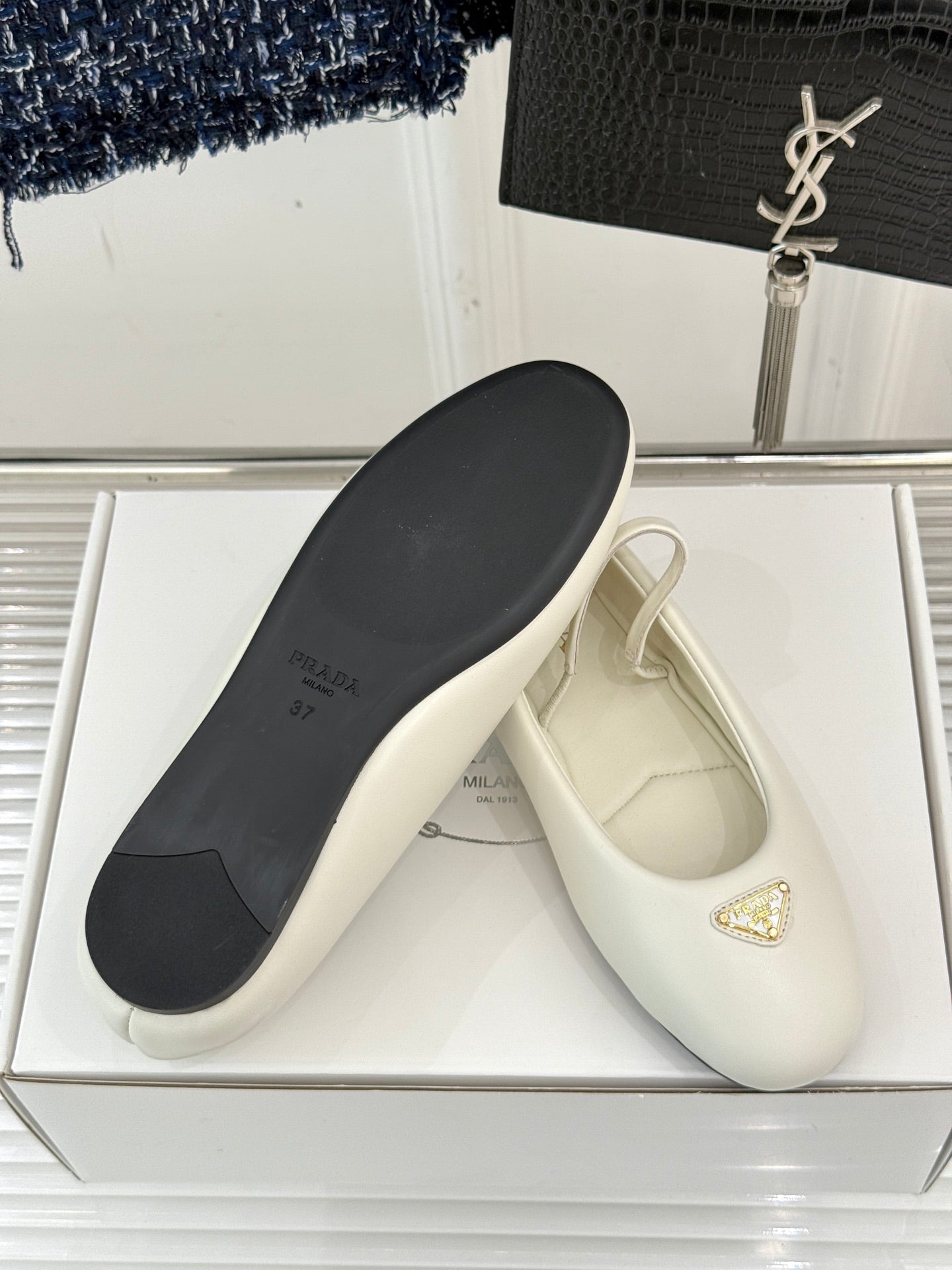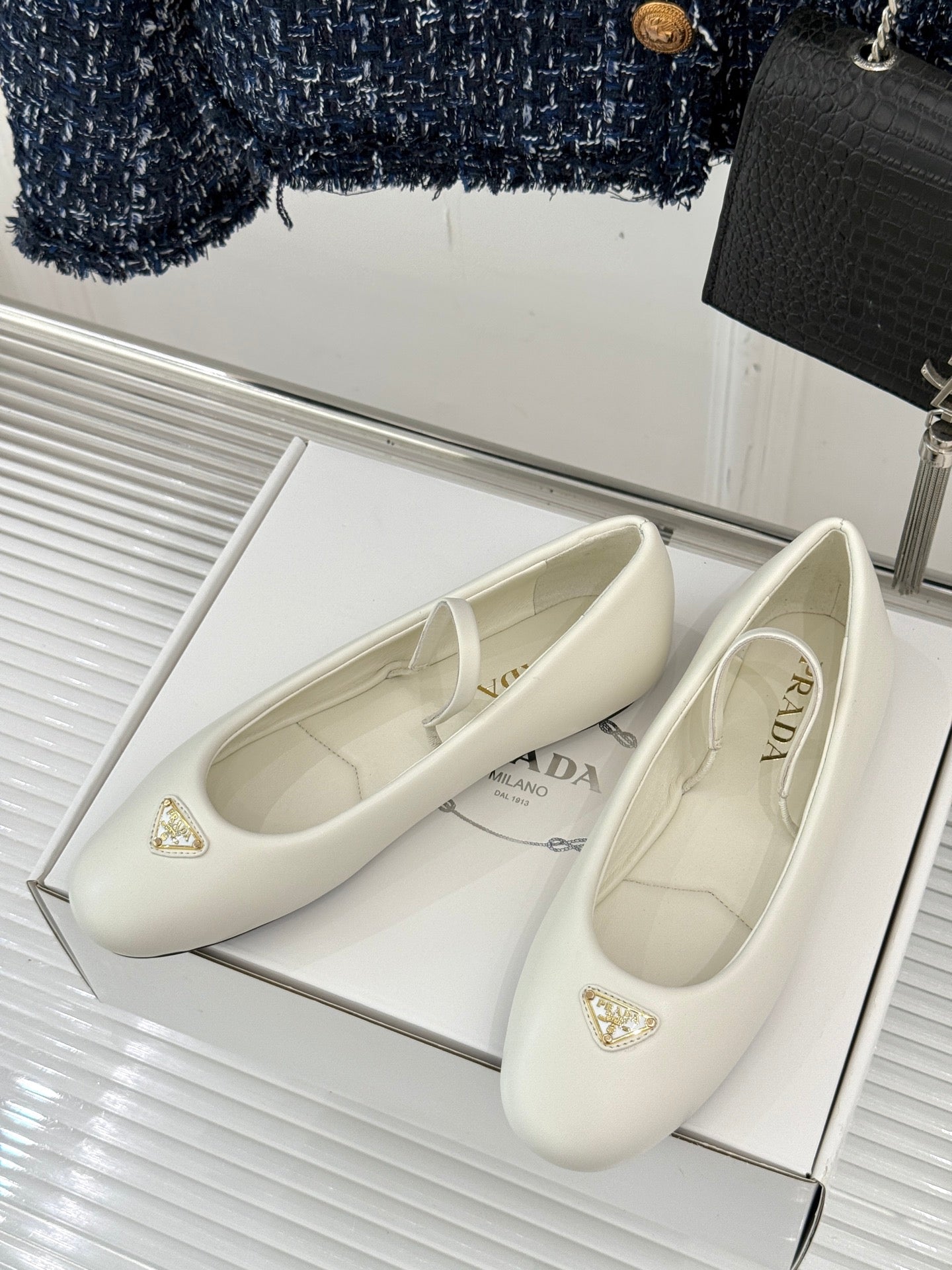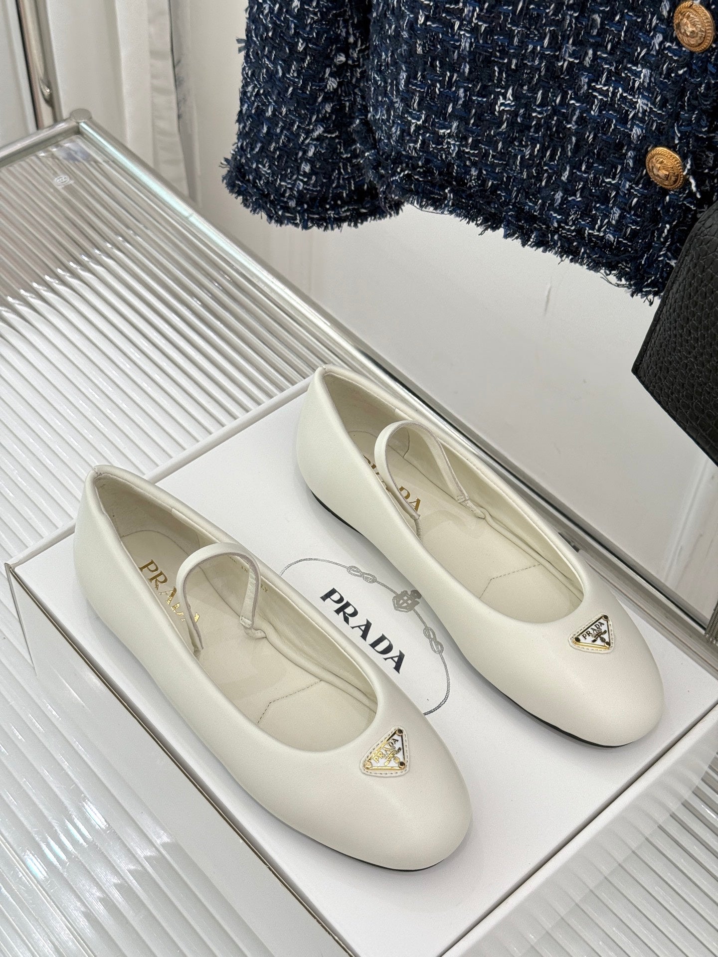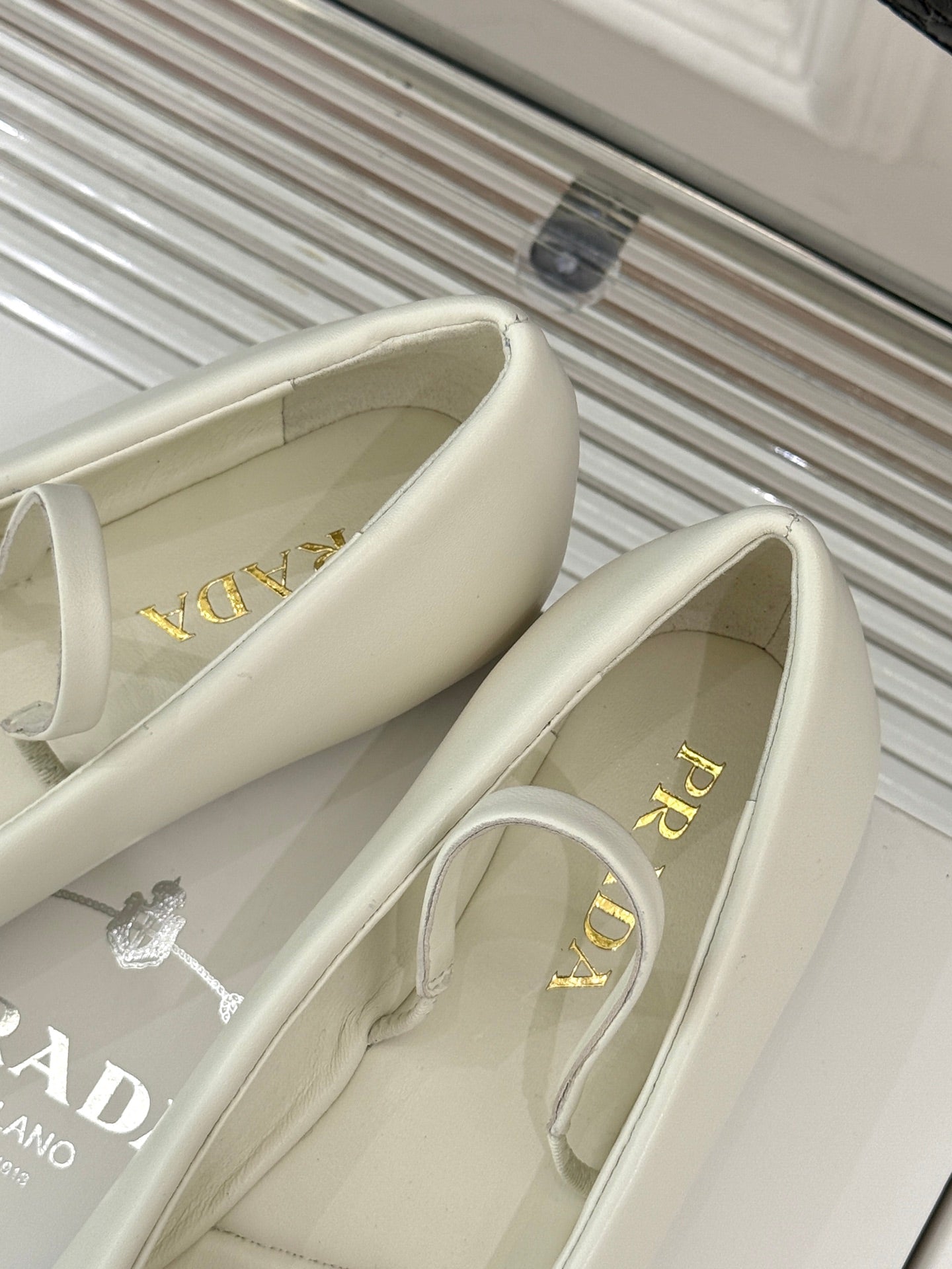 PRADA 25S SOFT PADDED BALLERINAS IN IVORY NAPPA LEATHER