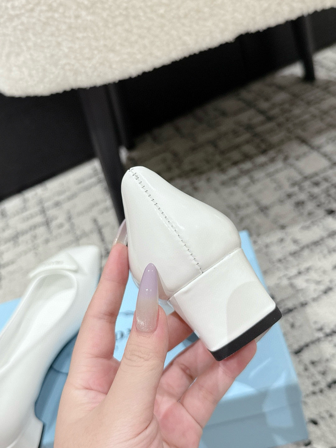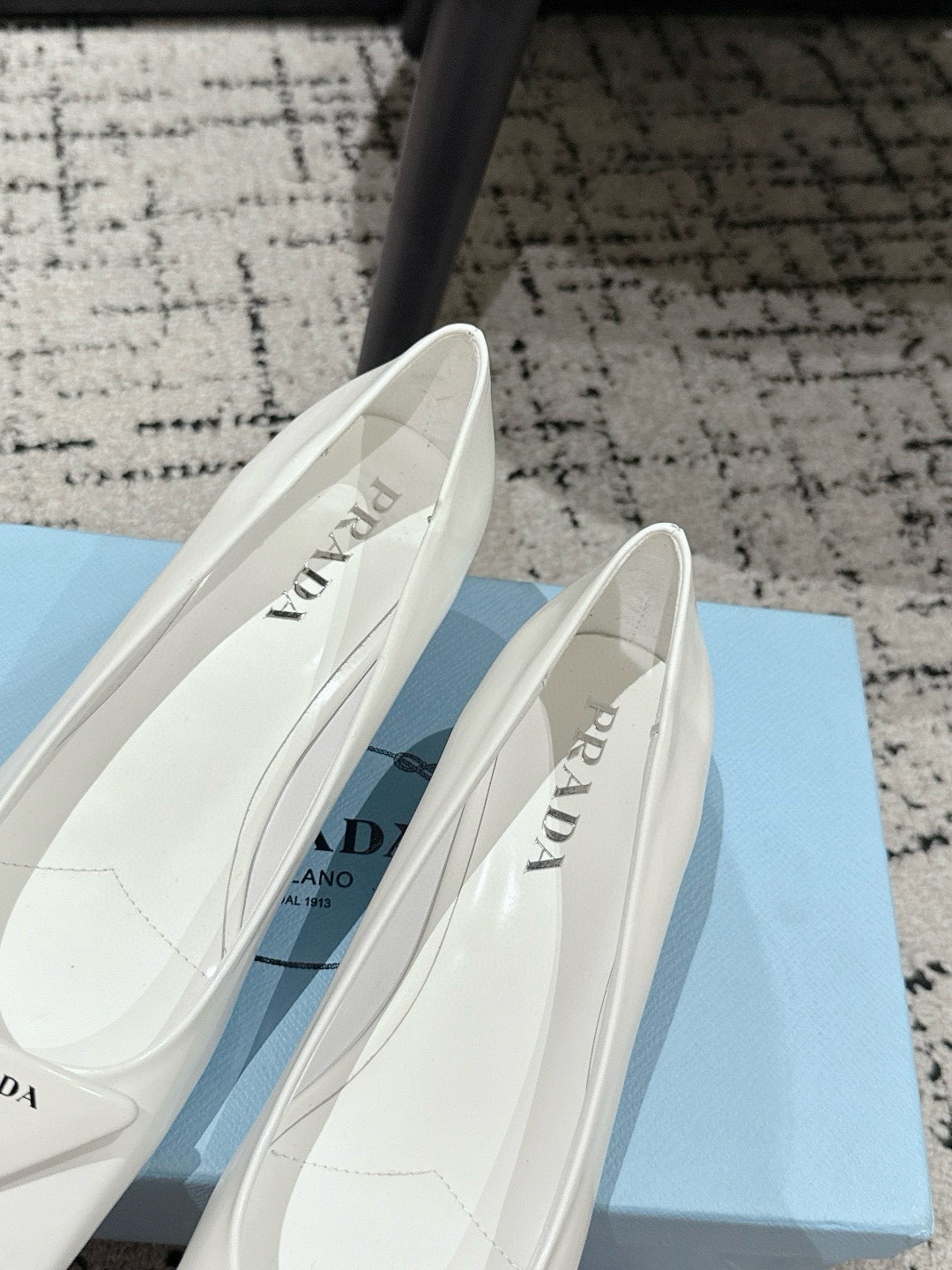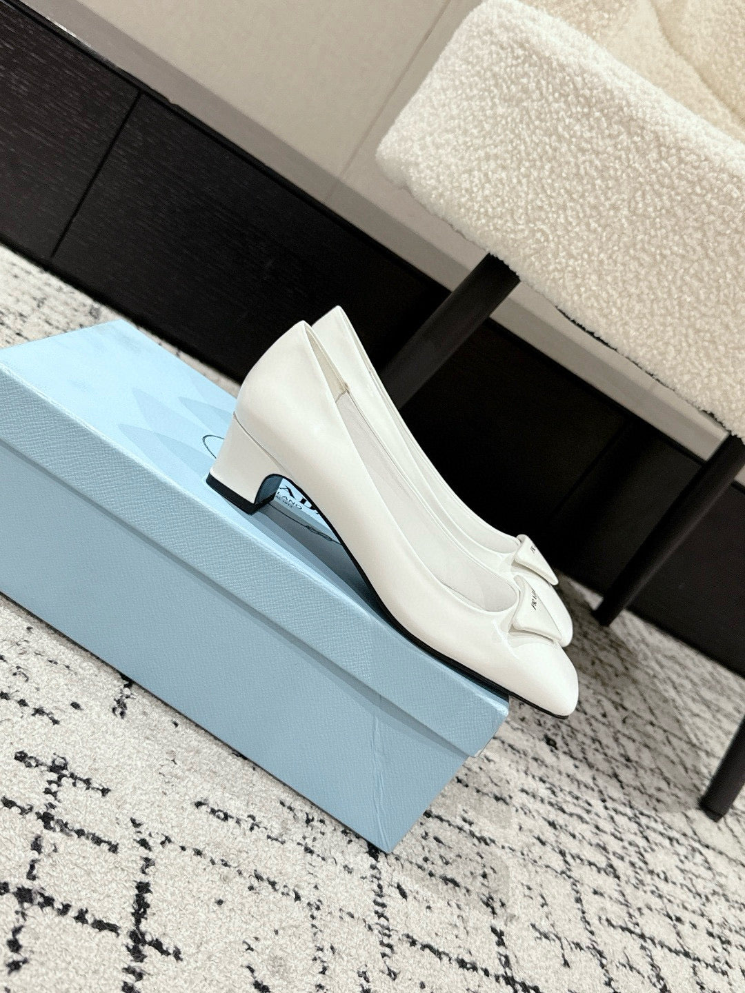 PRADA 25S SQUARE TOE HIGH HEELS IN WHITE PATENT CALFSKIN
